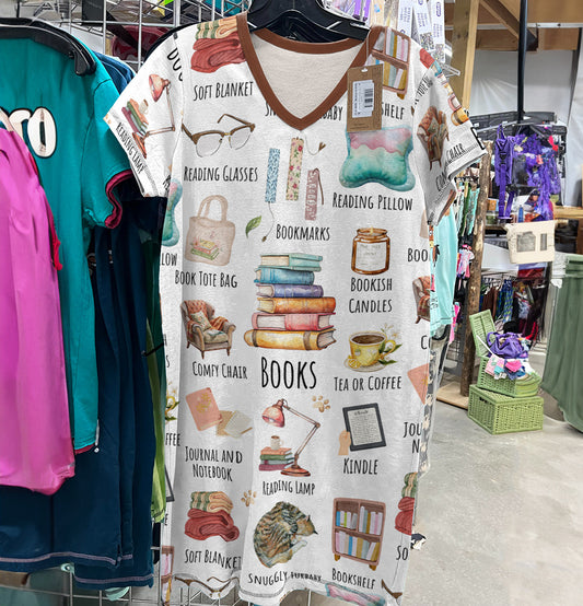 Book Lover V-neck Nightshirt Reading Retreat
