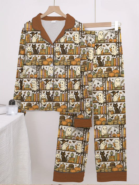 Book Lovers Halloween Classic Pajama Set Reading Ghosts