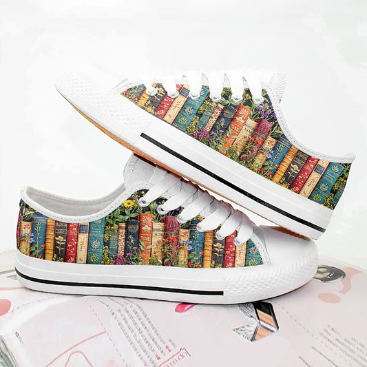 Book Lover Women's Low Top Shoes Floral Books