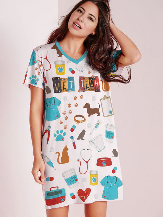 Vet Tech V-neck T-shirt Dress Vet Tech Vibes