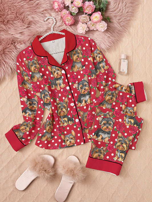 Yorkshire Terrier Classic Pajama Set Yorkie Rose Dreams