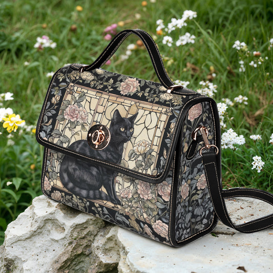Cat Lover Satchel Handbag Nocturne Elegance Cottagecore