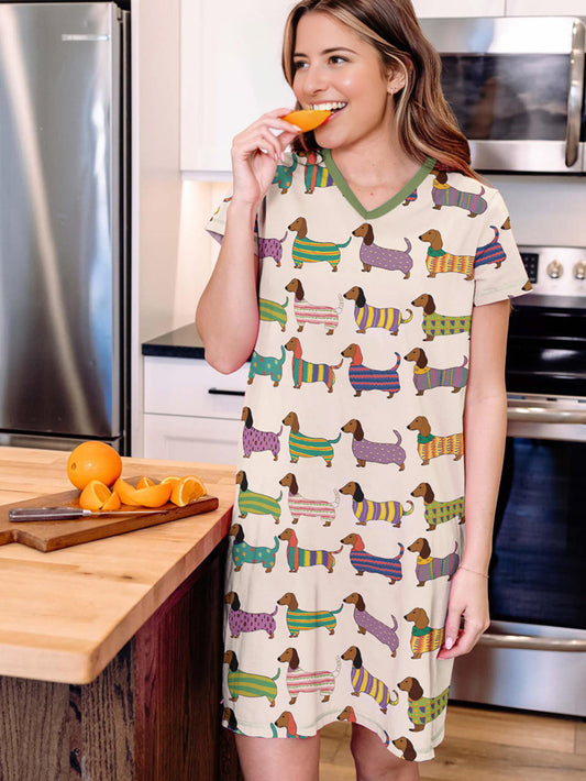 Dachshund V-neck Nightshirt Stylish Dachshunds
