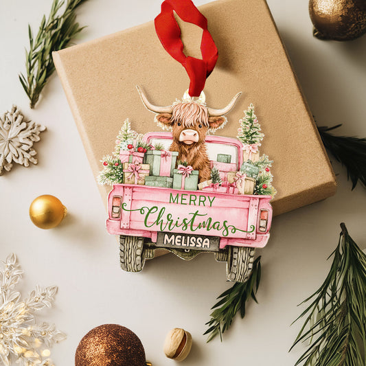 Highland Cow Acrylic Ornament Highland Christmas Truck Personalized