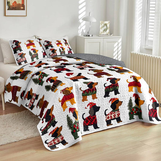 Dachshund All Season Quilt 3-Piece Set Happy Christmas Dachshunds