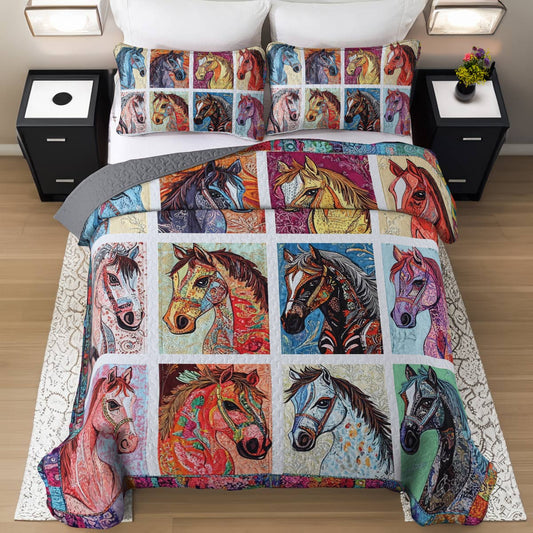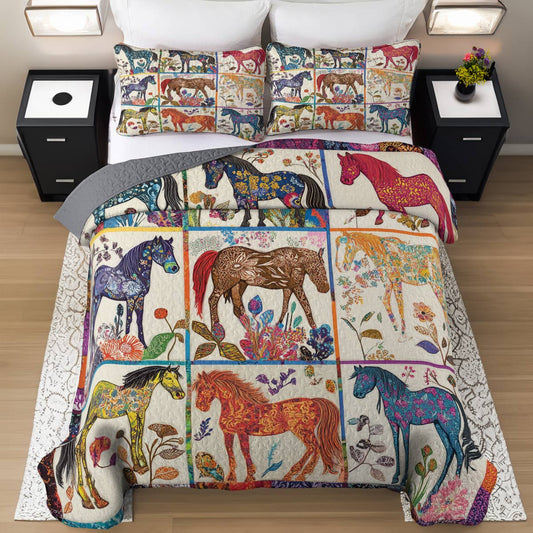 Horse All Season Quilt 3-Piece Set Colorful Horses