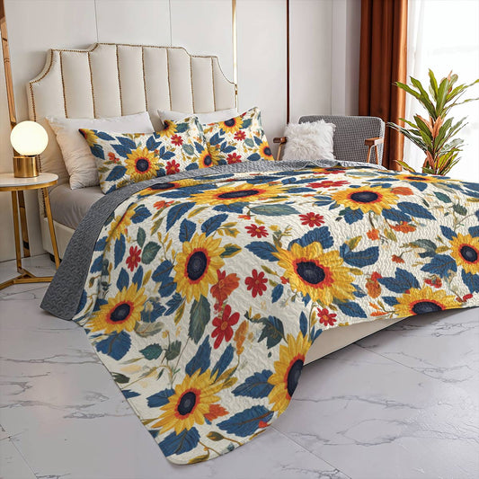 Sunflower All Season Quilt 3-Piece Set Sunny Sunflowers