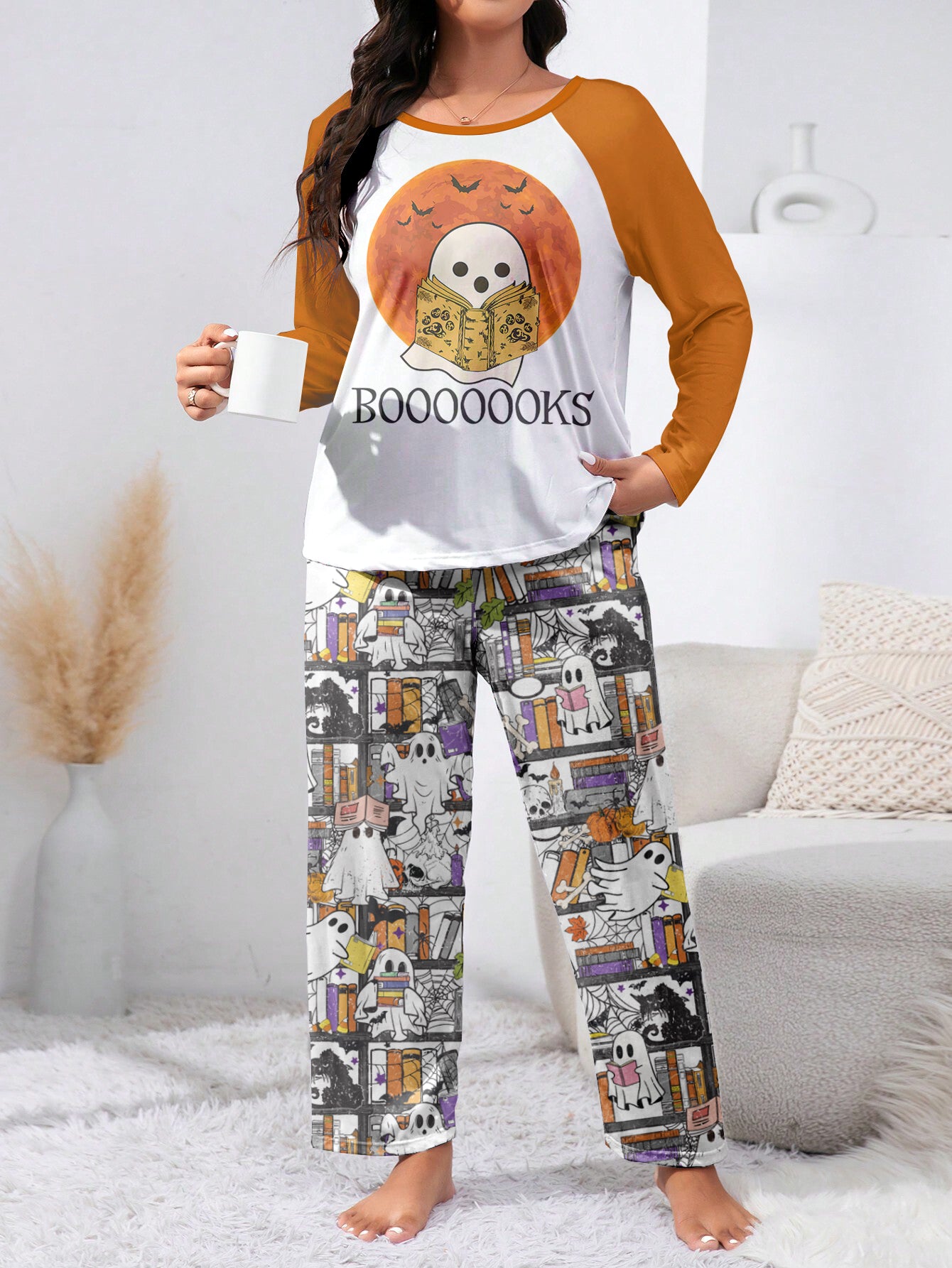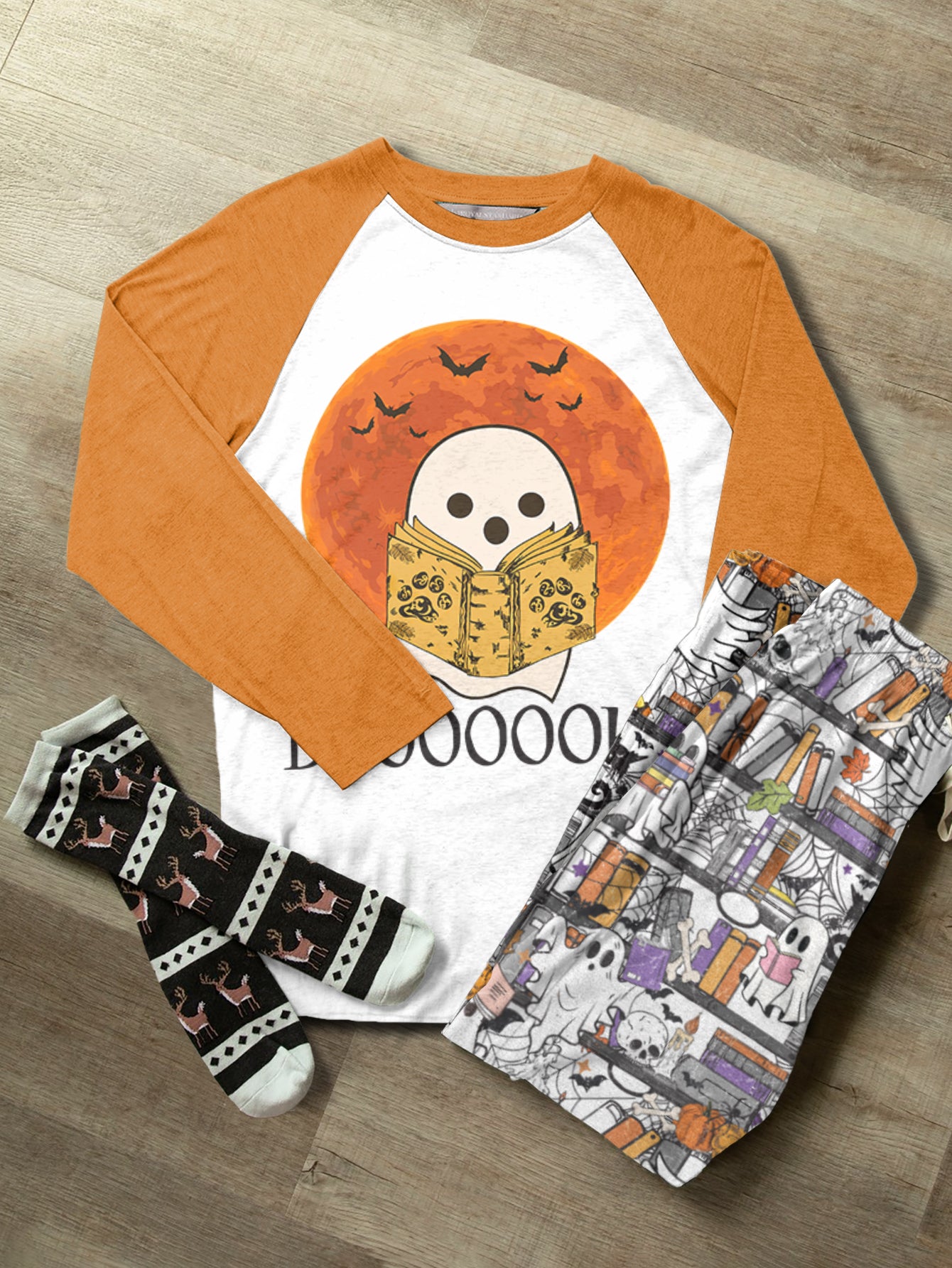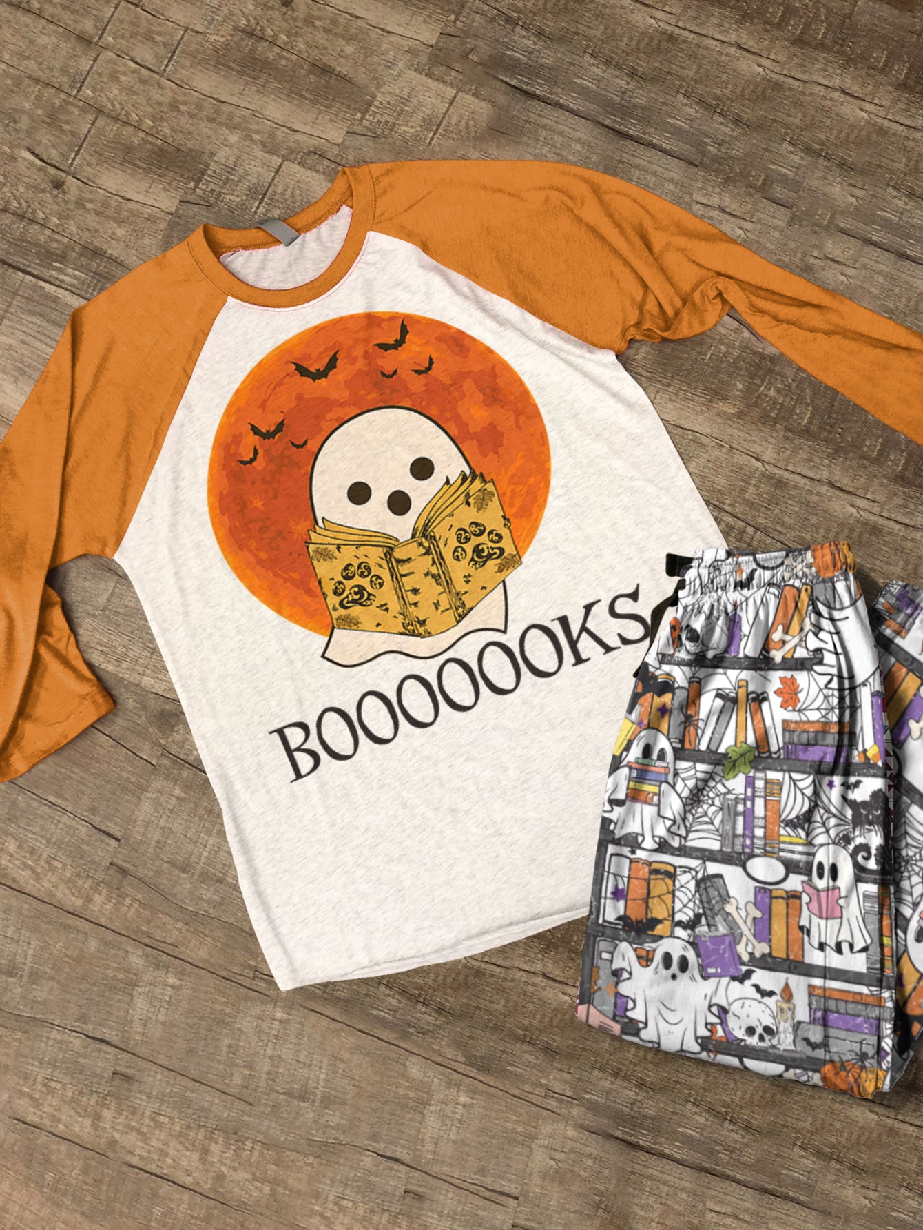 Book Lover Raglan Lounge Pajamas Boooooks Reading Ghosts