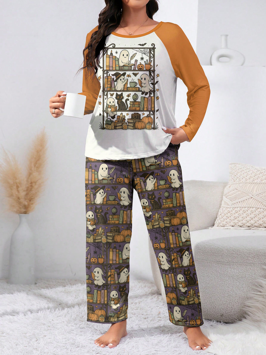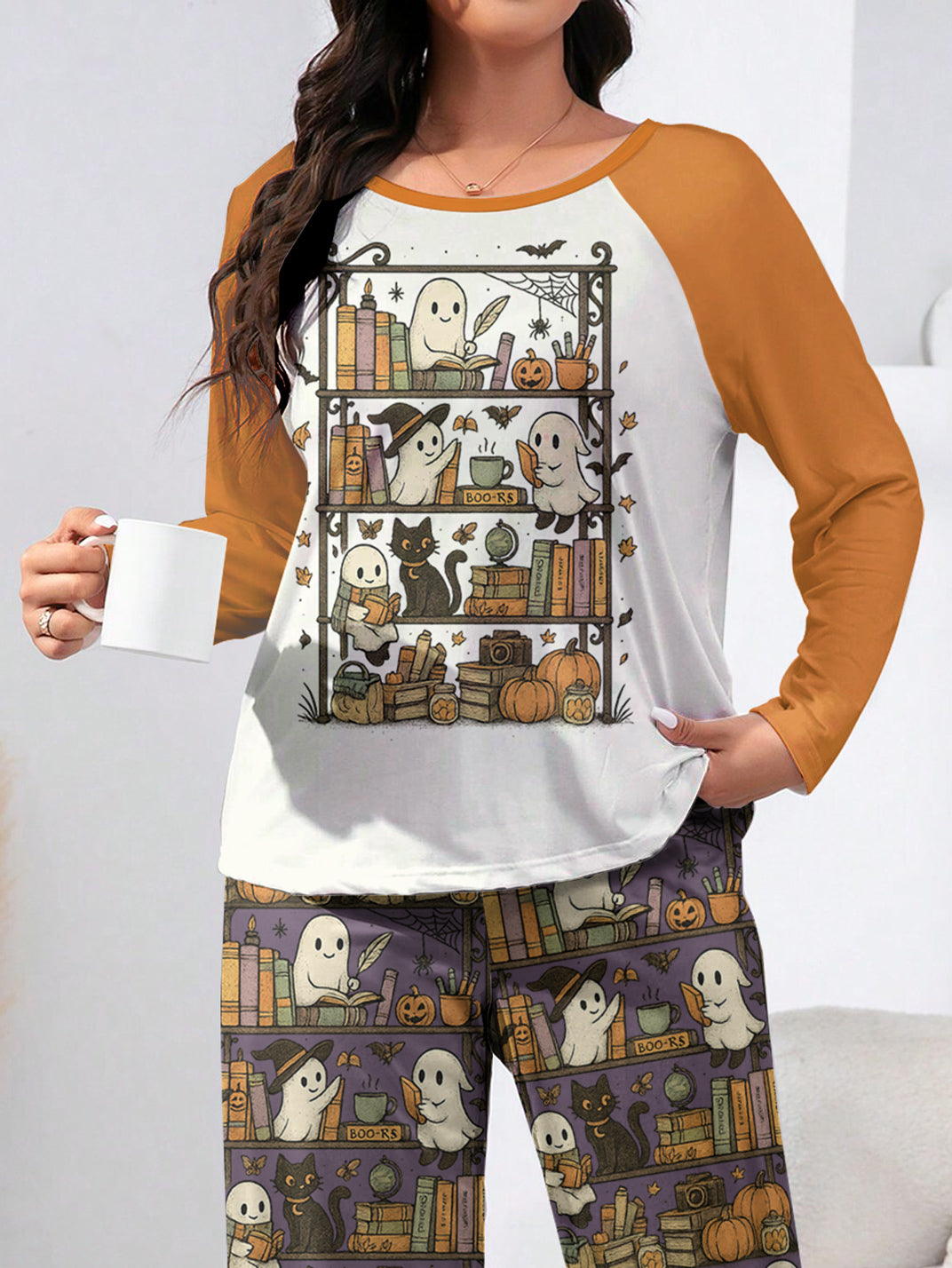 Book Lover Raglan Lounge Pajamas Library Ghost