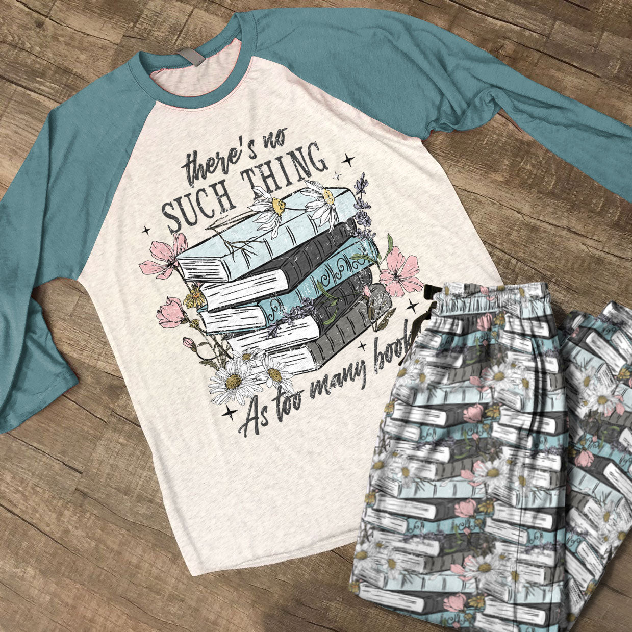 Book Lover Raglan Lounge Pajamas There's No Such Thing As Too Many Books