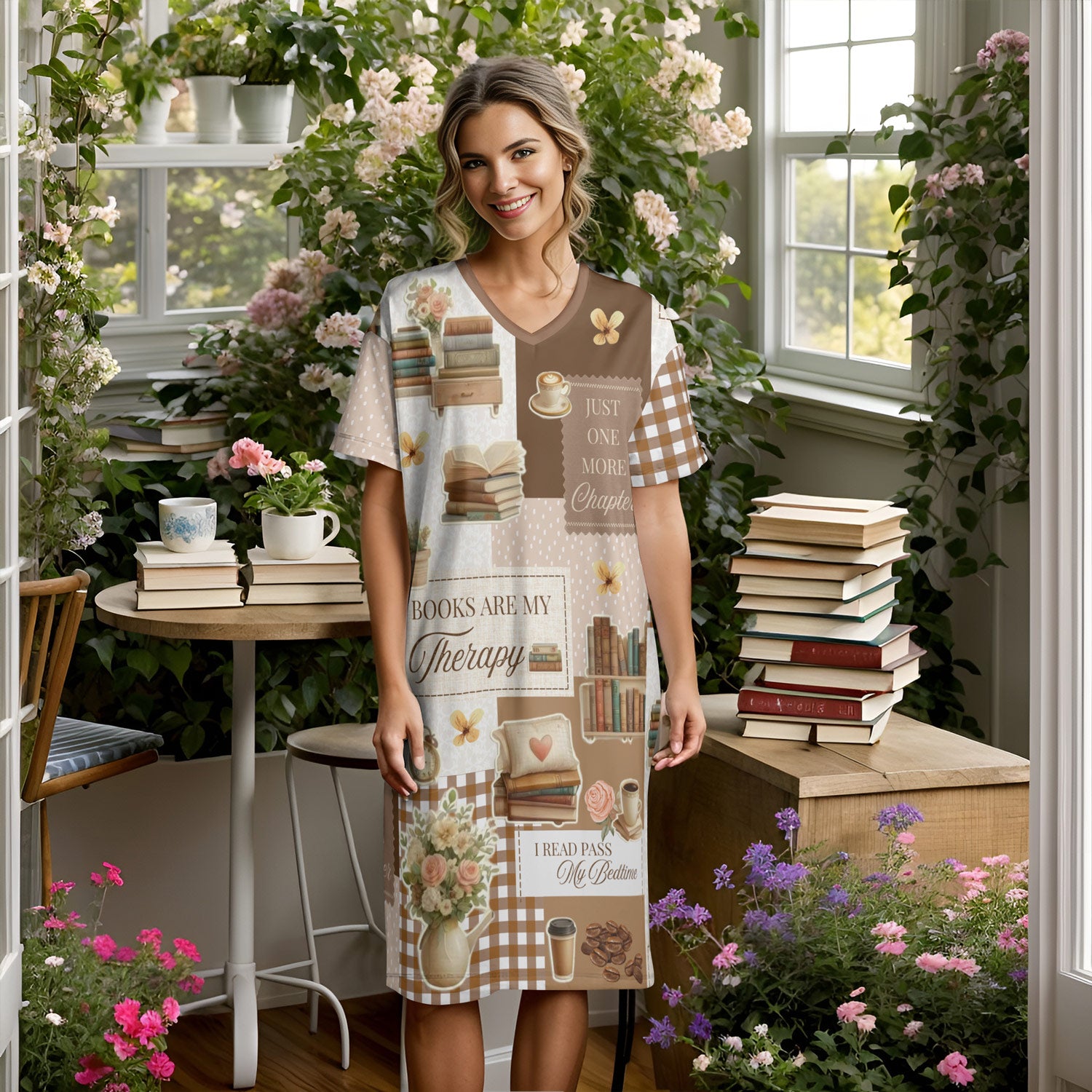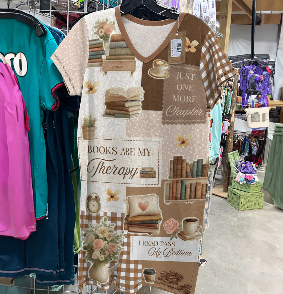 Book Lover V-neck Nightshirt Books Are My Therapy