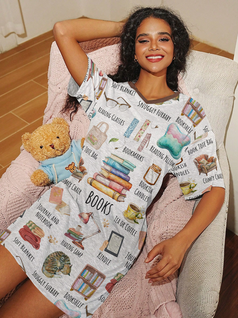 Book Lover V-neck Nightshirt Bookworm Essentials