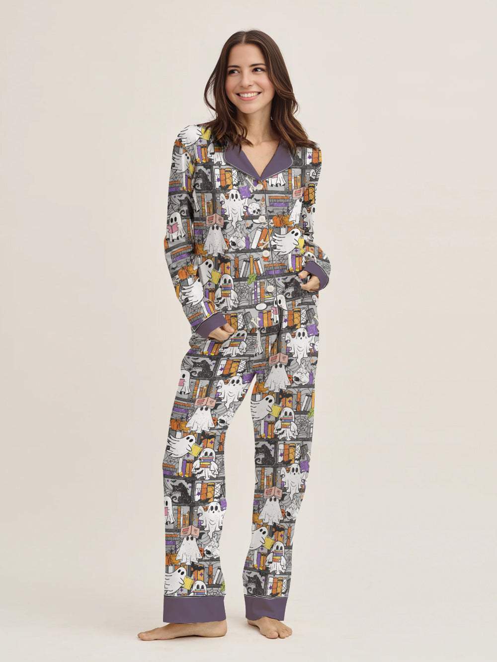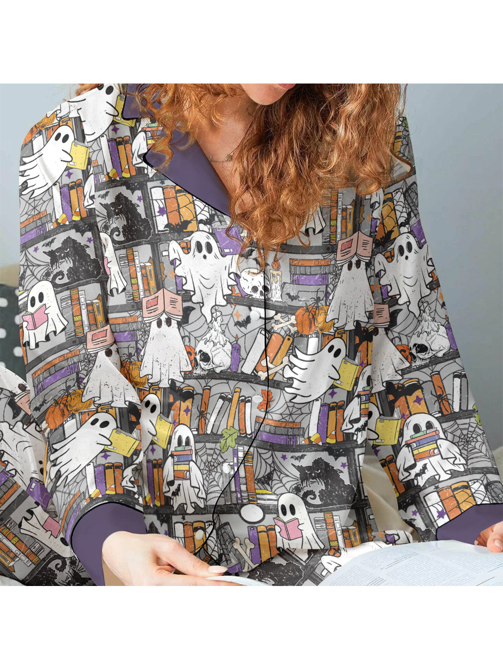 Book Lovers Halloween Classic Pajama Set Reading Ghosts