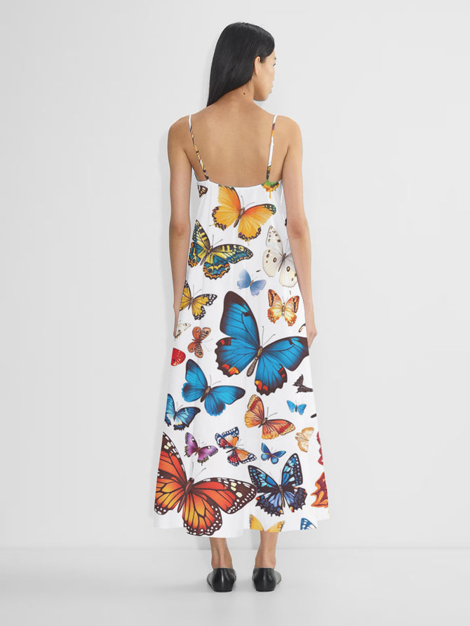 Beachy elegance meets artistic flair in this uniquely printed dress from Million Sunny. Featuring adjustable straps and a flattering plunging neckline, this dress flows gently from an empire waist into a clean, elegant A-line silhouette—without tiers. Made from soft, lightweight chiffon, it drapes beautifully for a breezy, relaxed feel perfect for warm-weather days.