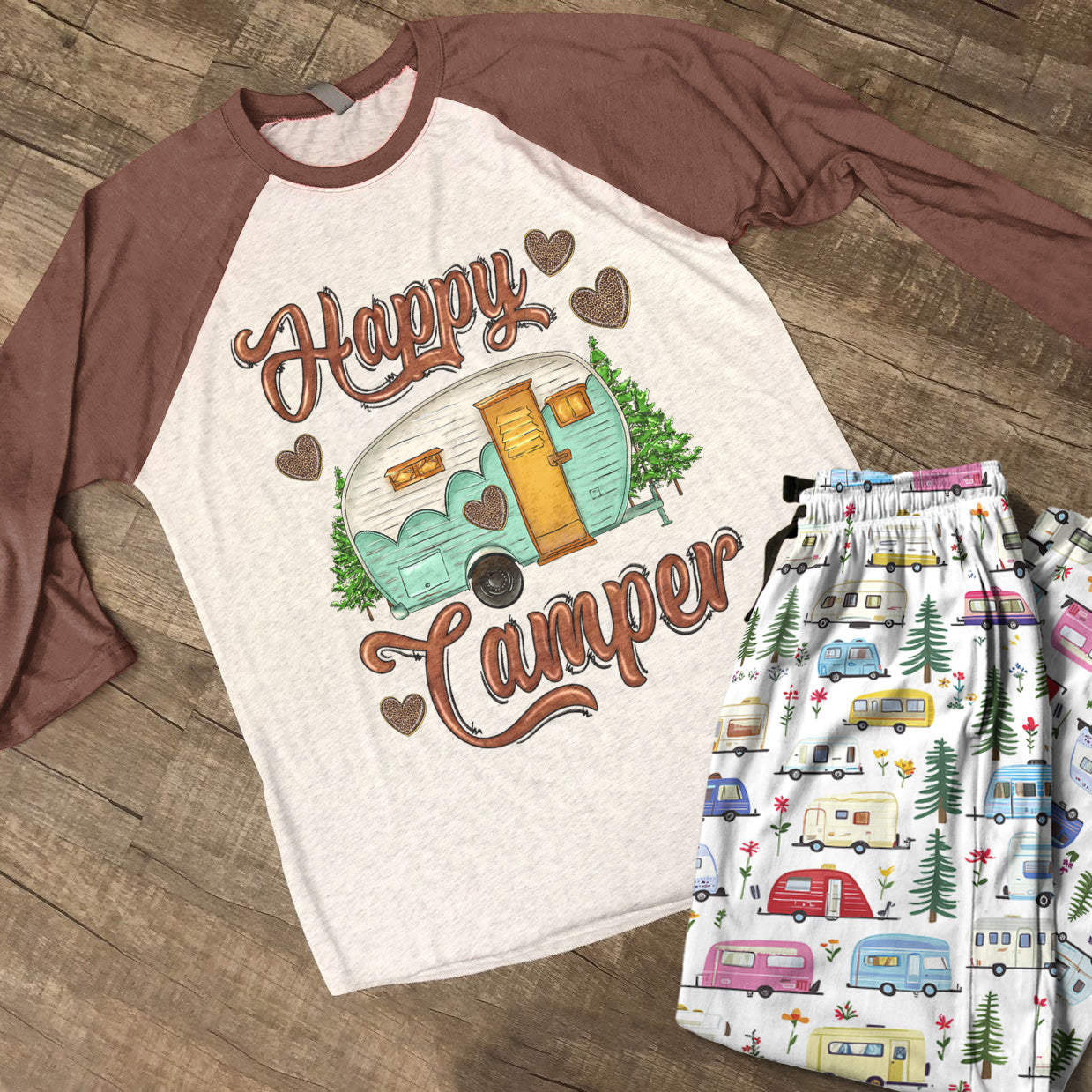 Camping Raglan Lounge Pajamas Happy Camper