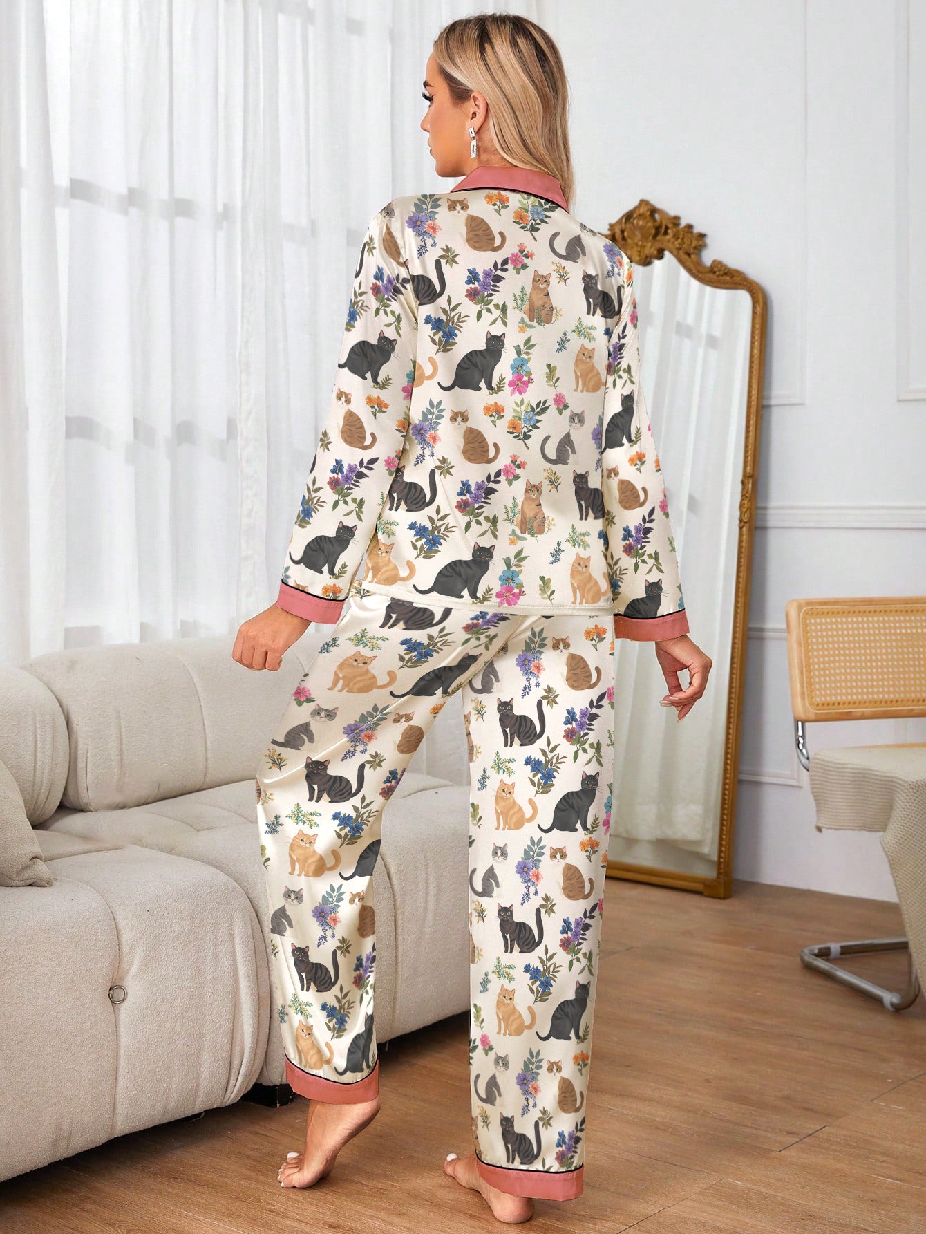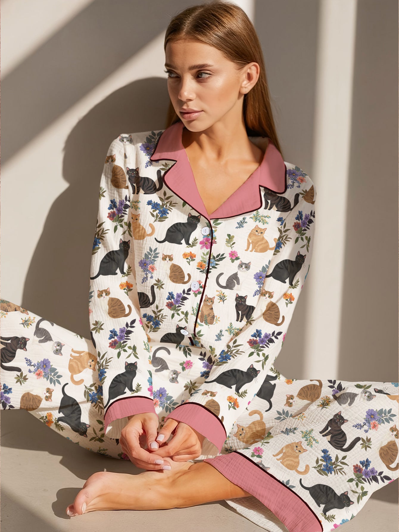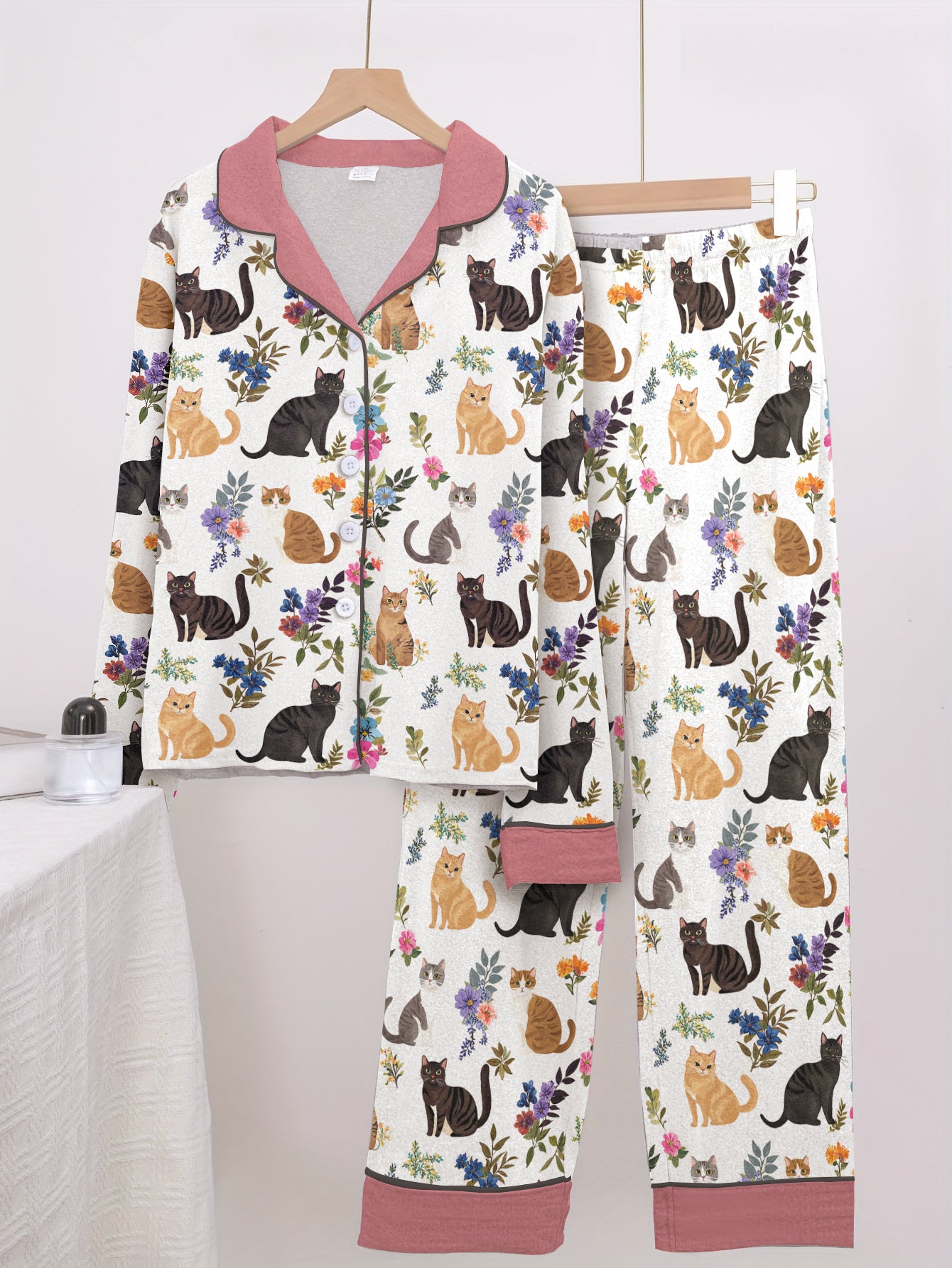 Cat Classic Pajama Set Garden Whiskers Pink