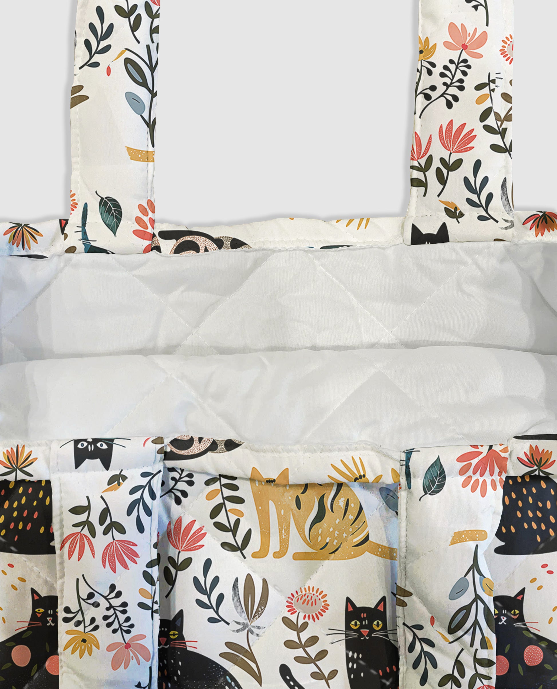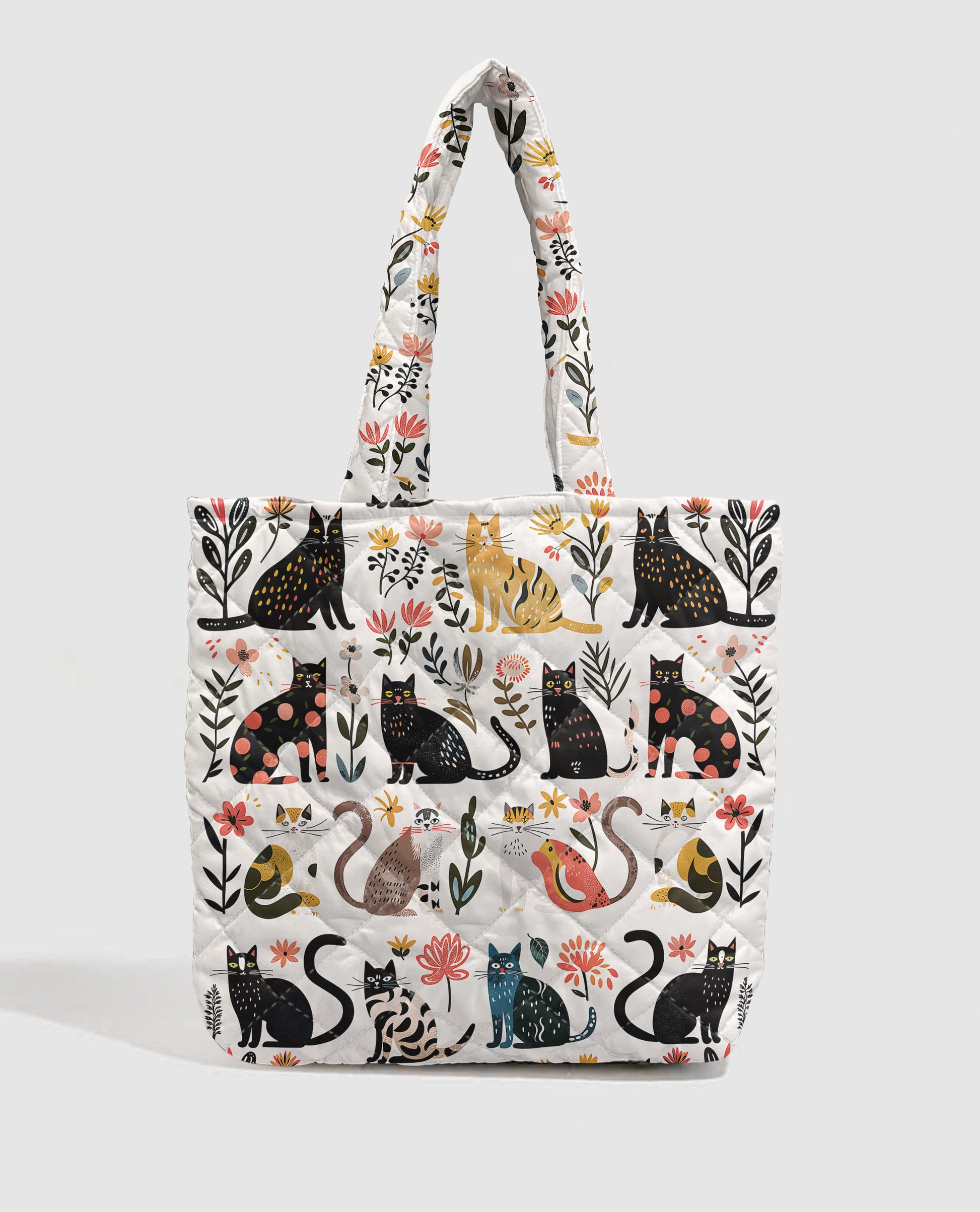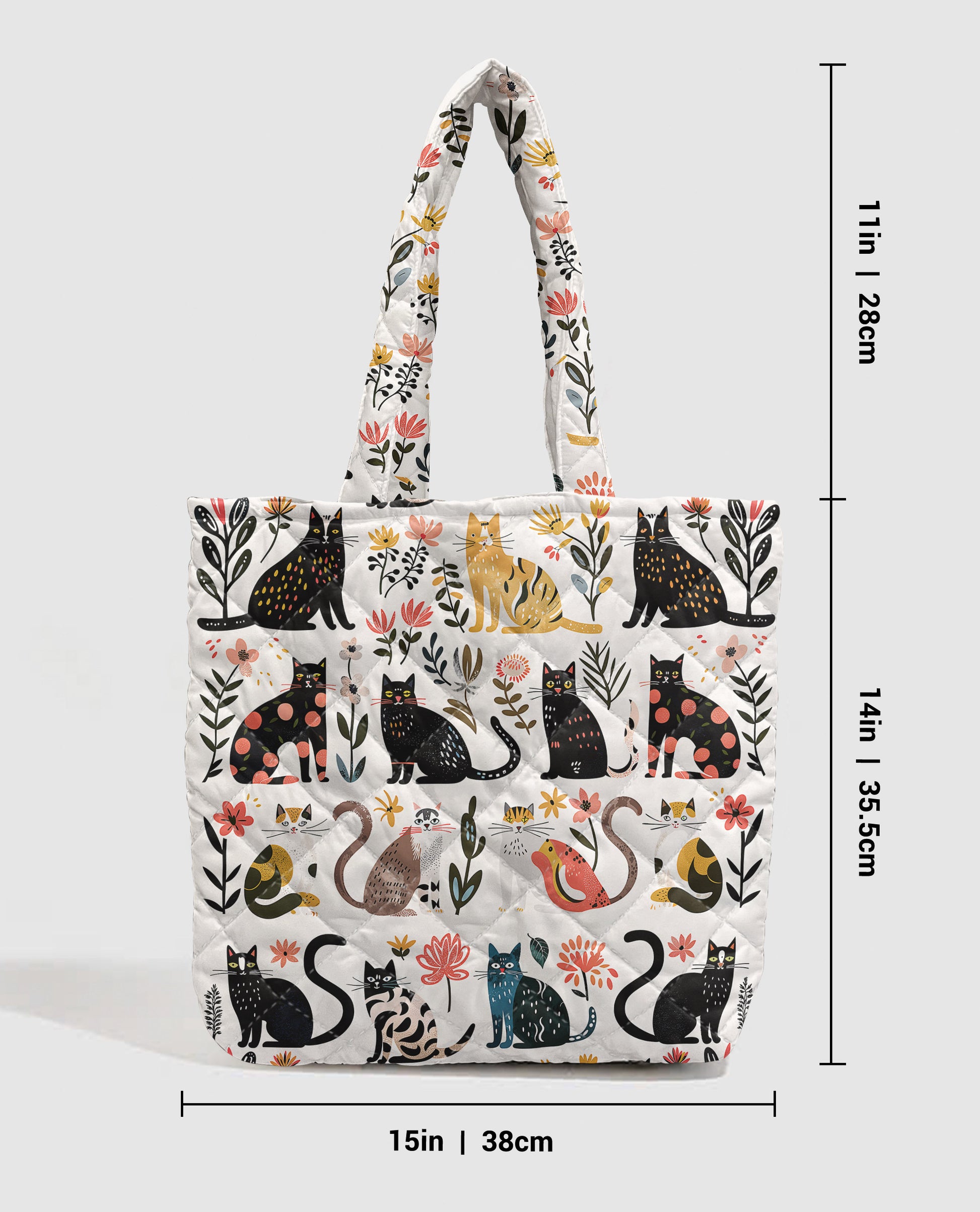 Cat Lover Quilted Tote Bag Botanical Cat Bliss