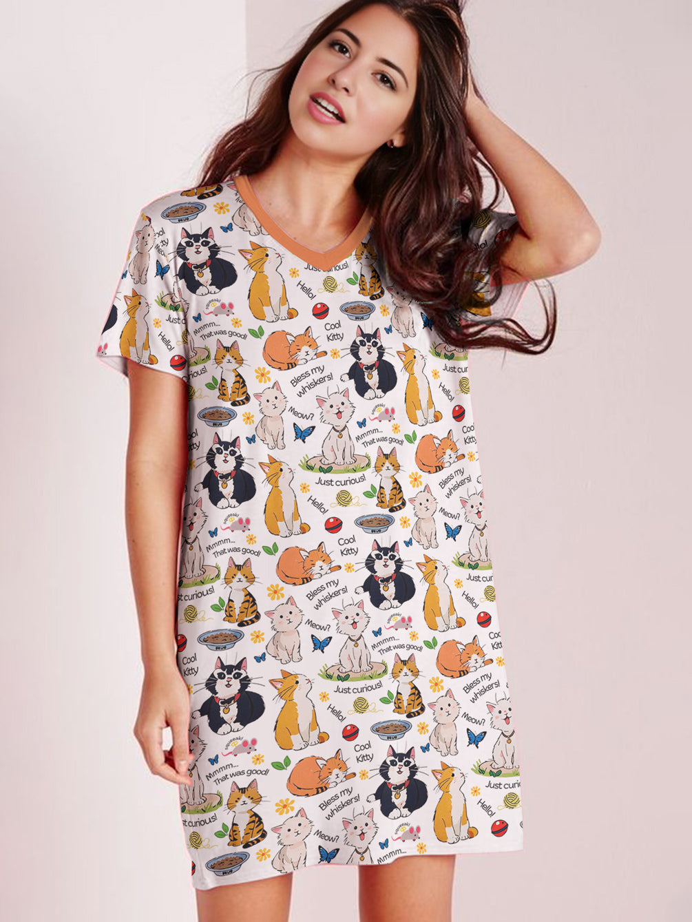 Cat Lover V-neck Nightshirt Cool Kitties