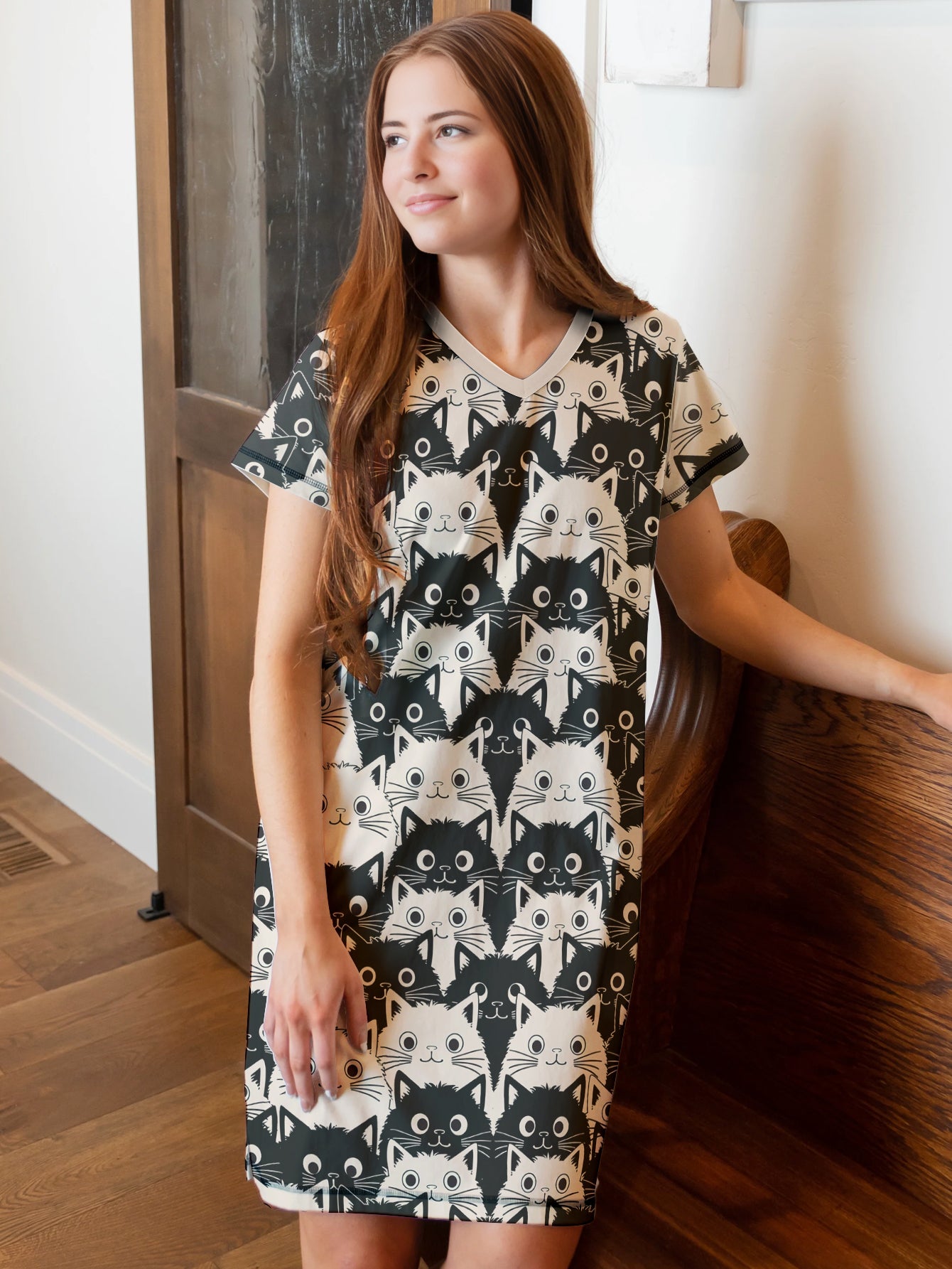 Cat Lover V-neck Nightshirt Cute Fat Cats