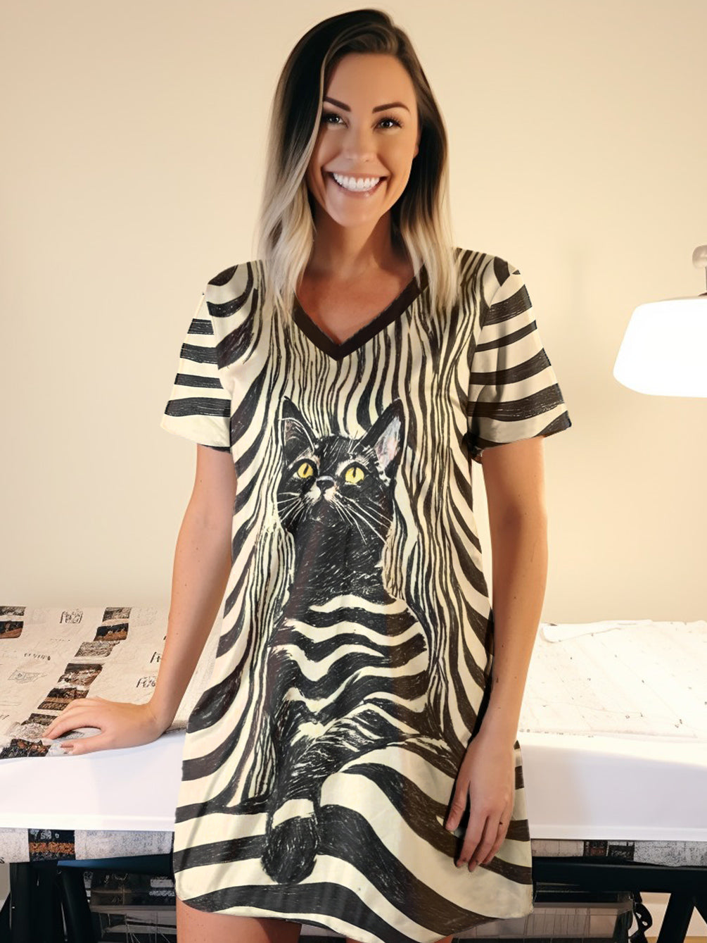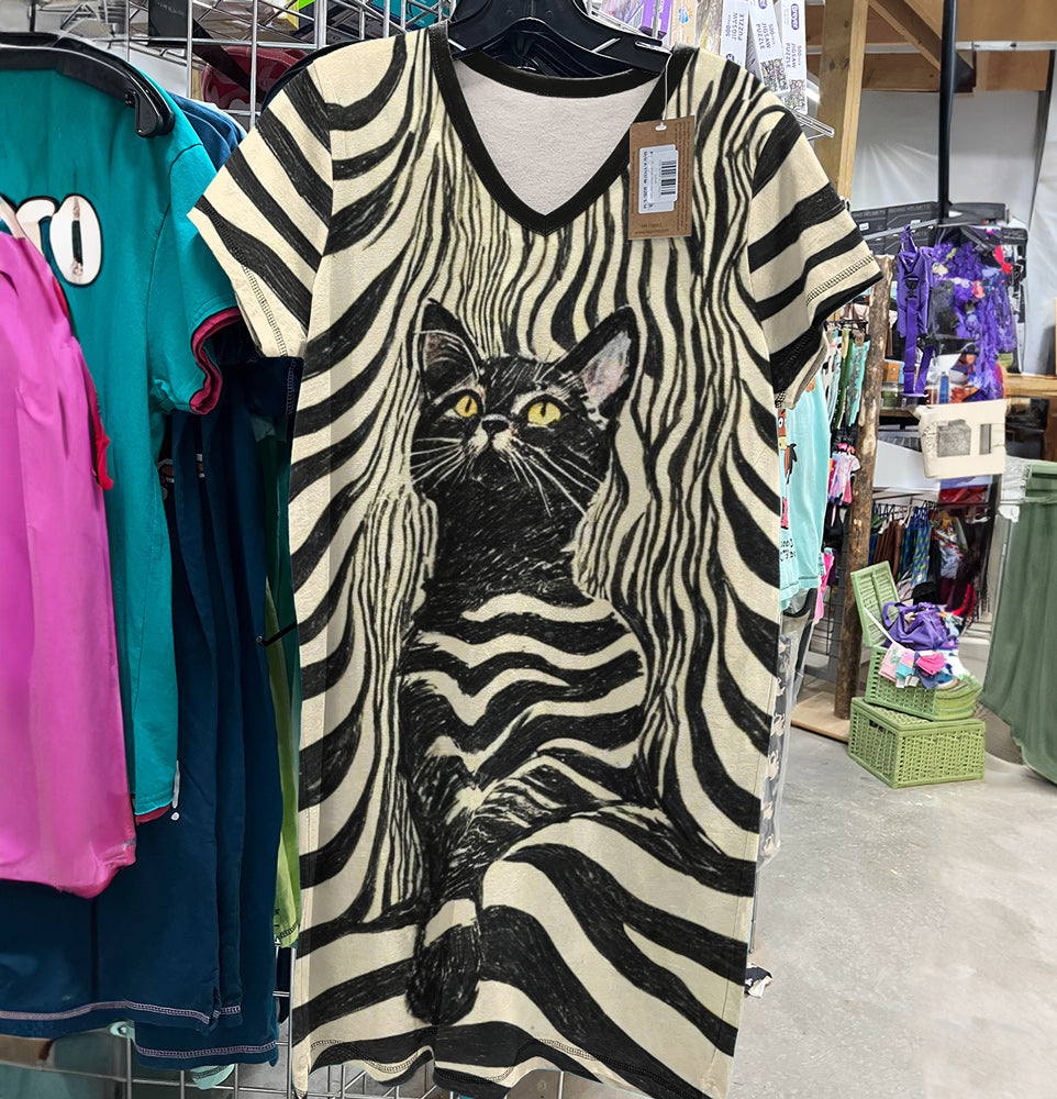 Cat Lover V-neck Nightshirt Dreamy Stripes