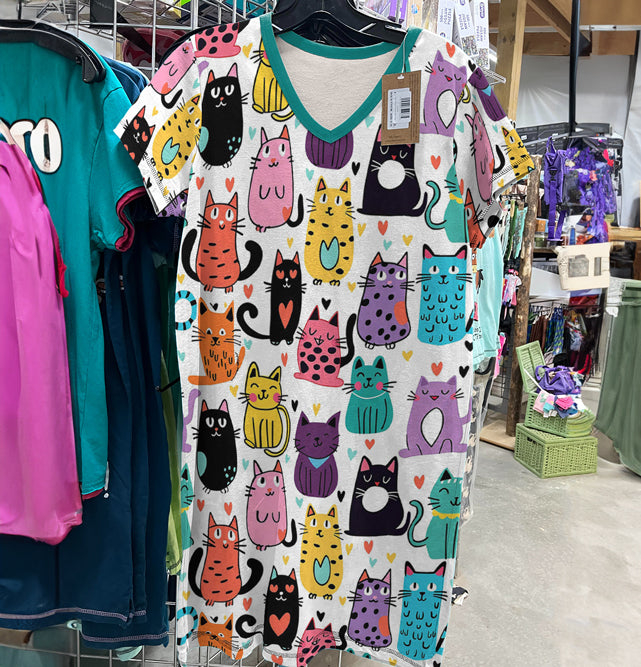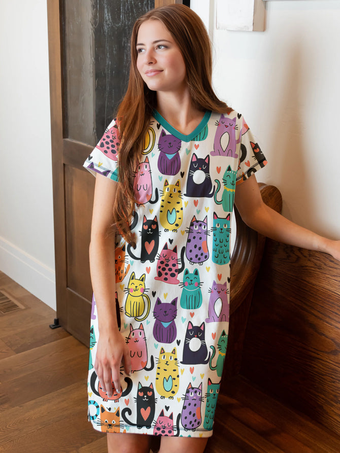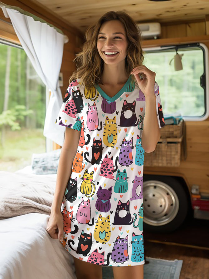 Cat Lover V-neck Nightshirt Feline Fun