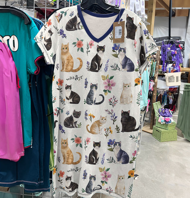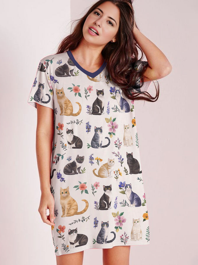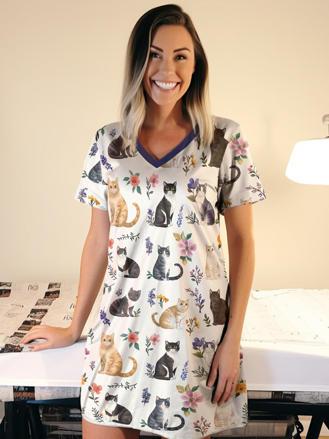 Made from ultra-soft Jersey Knit Fabric (95% polyester, 5% spandex), it's lightweight, breathable, and perfect for lounging. Featuring unique printed graphics, this nightshirt adds a touch of personal style to your cozy moments at home.