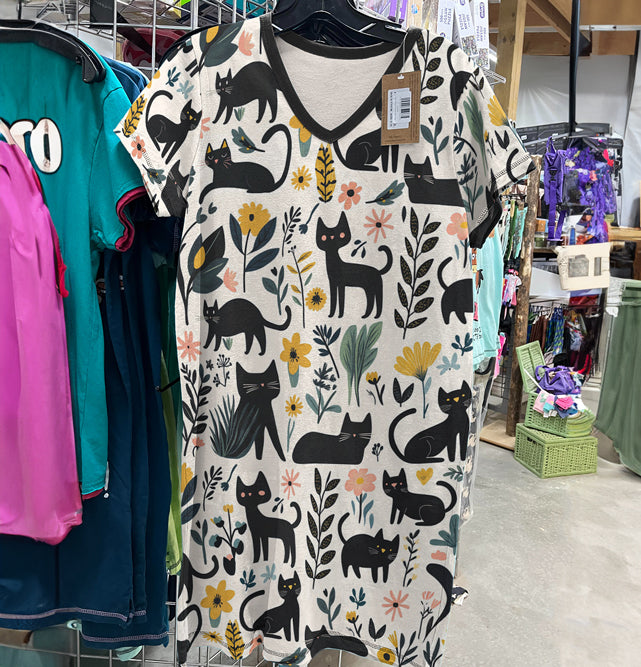Made from ultra-soft Jersey Knit Fabric (95% polyester, 5% spandex), it's lightweight, breathable, and perfect for lounging. Featuring unique printed graphics, this nightshirt adds a touch of personal style to your cozy moments at home.