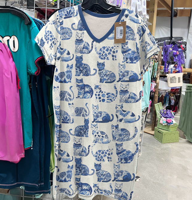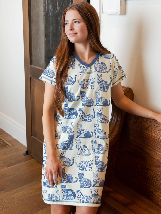 Cat Lover V-neck Nightshirt Harmony In Blue