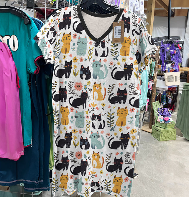 Made from ultra-soft Jersey Knit Fabric (95% polyester, 5% spandex), it's lightweight, breathable, and perfect for lounging. Featuring unique printed graphics, this nightshirt adds a touch of personal style to your cozy moments at home.