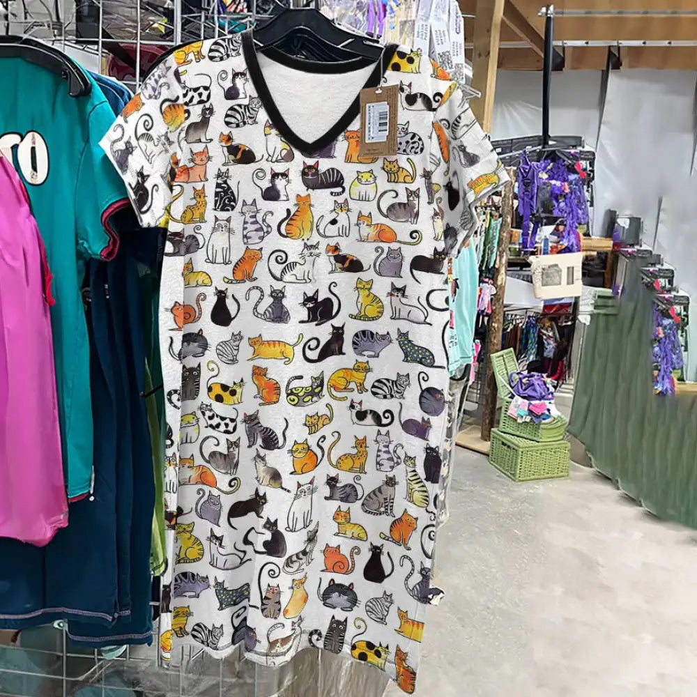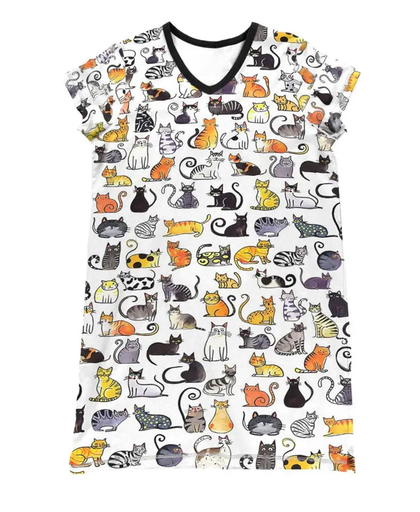 Cat Lover V-neck Nightshirt Meow & Snooze