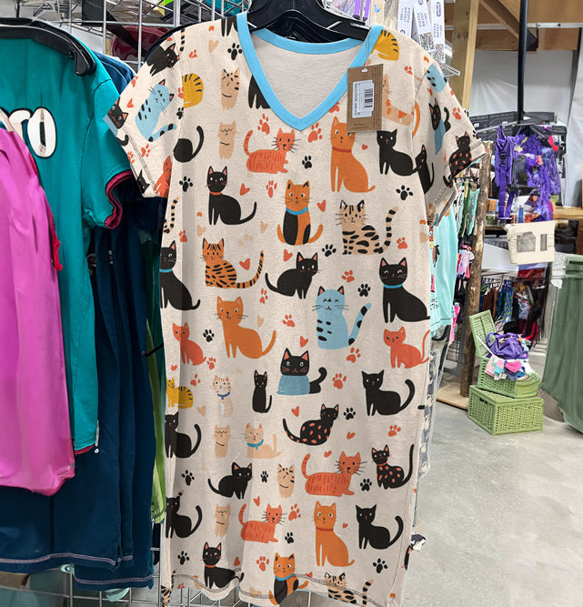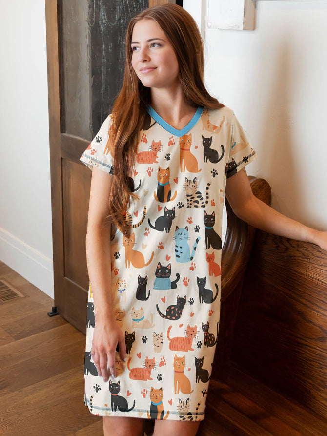 Cat Lover V-neck Nightshirt Playful Paws