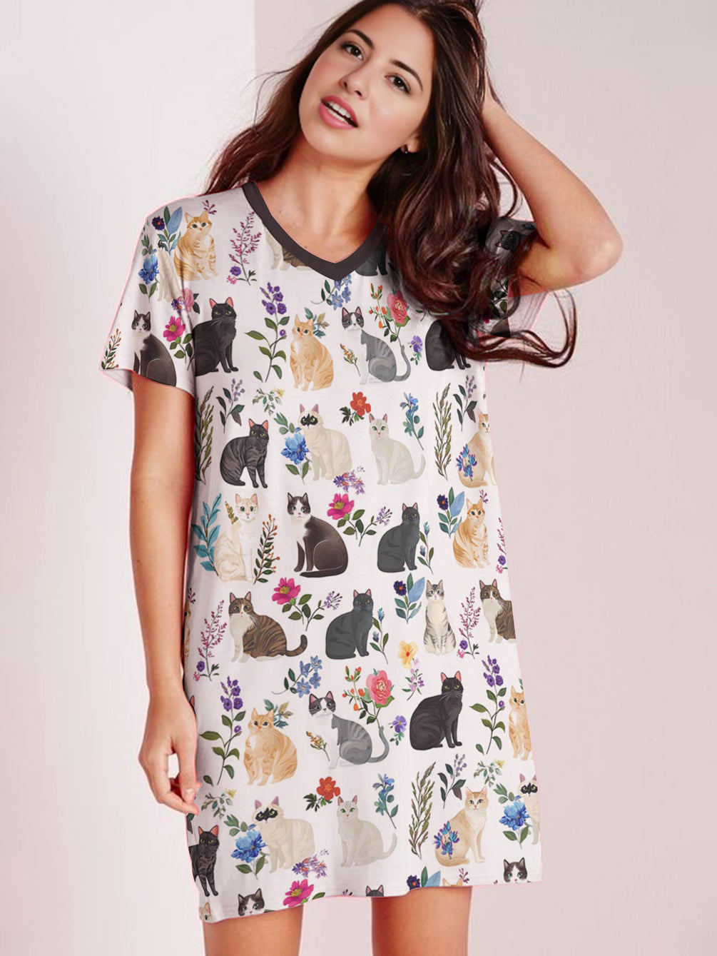 Made from ultra-soft Jersey Knit Fabric (95% polyester, 5% spandex), it's lightweight, breathable, and perfect for lounging. Featuring unique printed graphics, this nightshirt adds a touch of personal style to your cozy moments at home.
