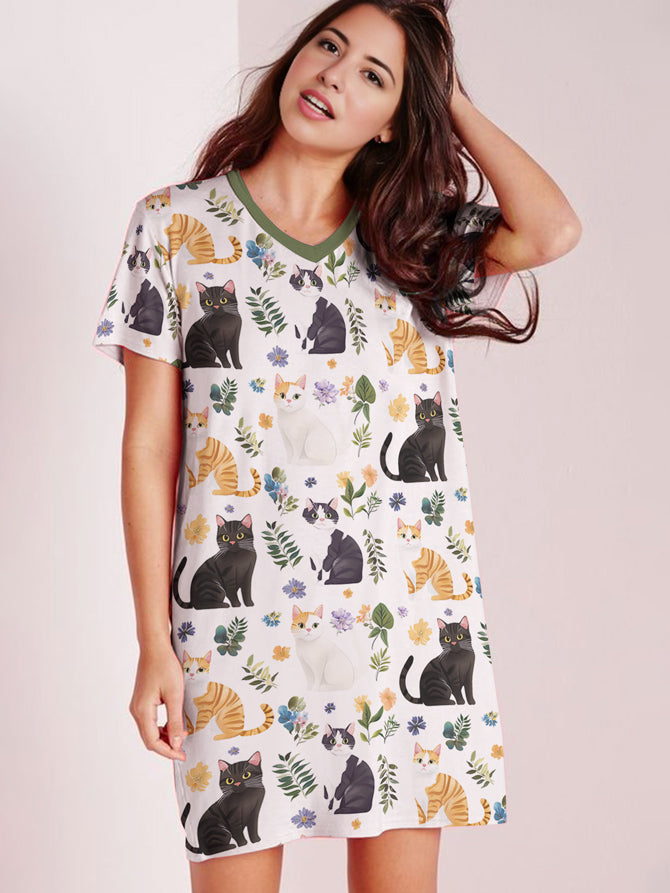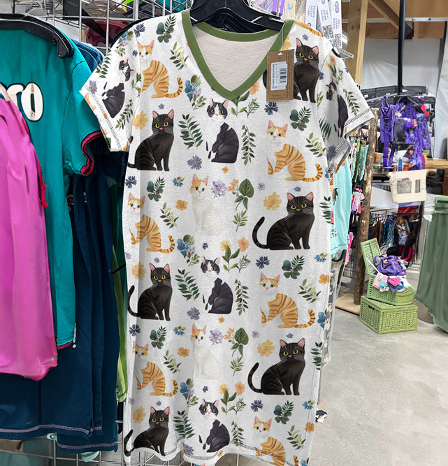 Made from ultra-soft Jersey Knit Fabric (95% polyester, 5% spandex), it's lightweight, breathable, and perfect for lounging. Featuring unique printed graphics, this nightshirt adds a touch of personal style to your cozy moments at home.