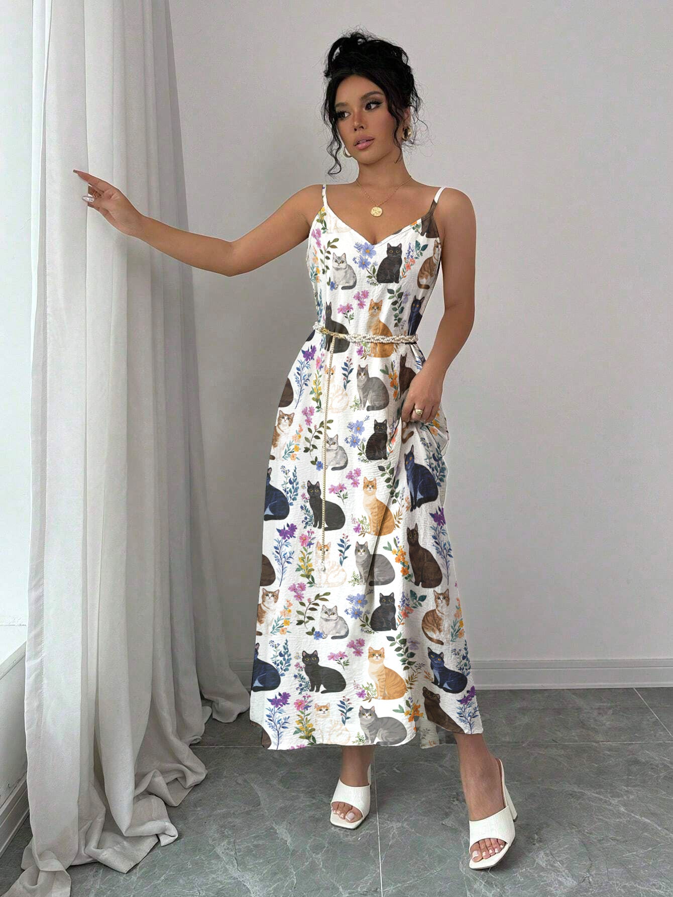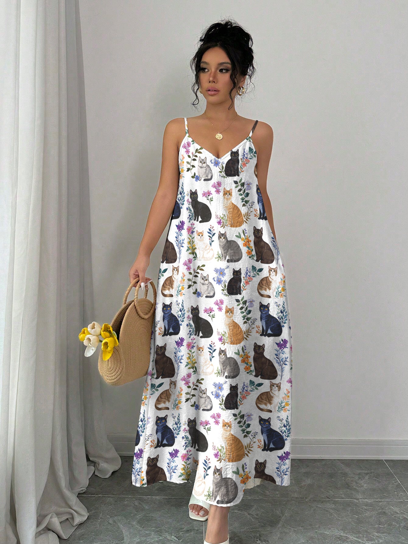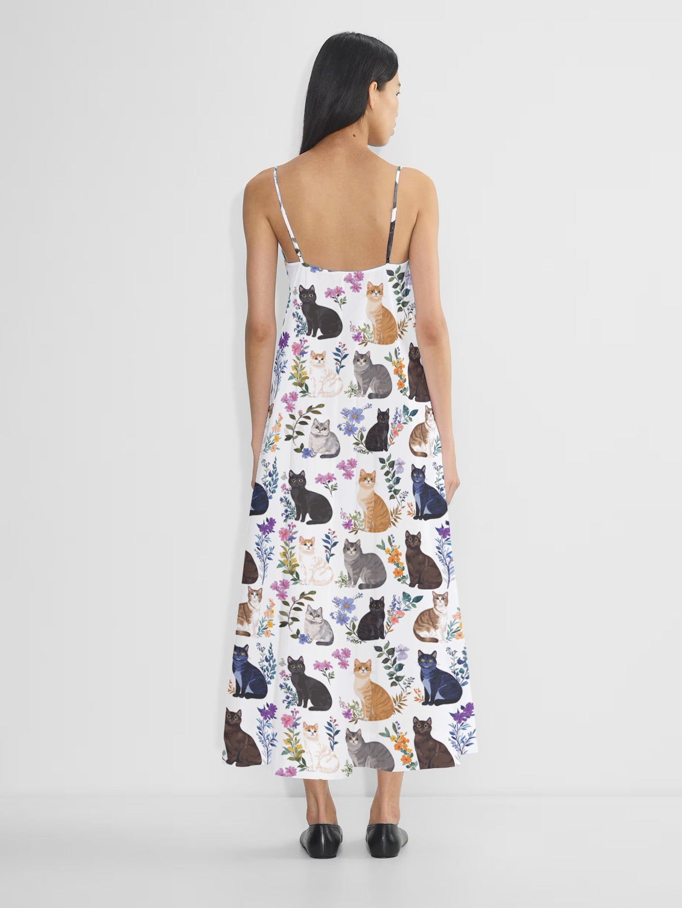 Cat Maxi Dress Charming Floral Cats