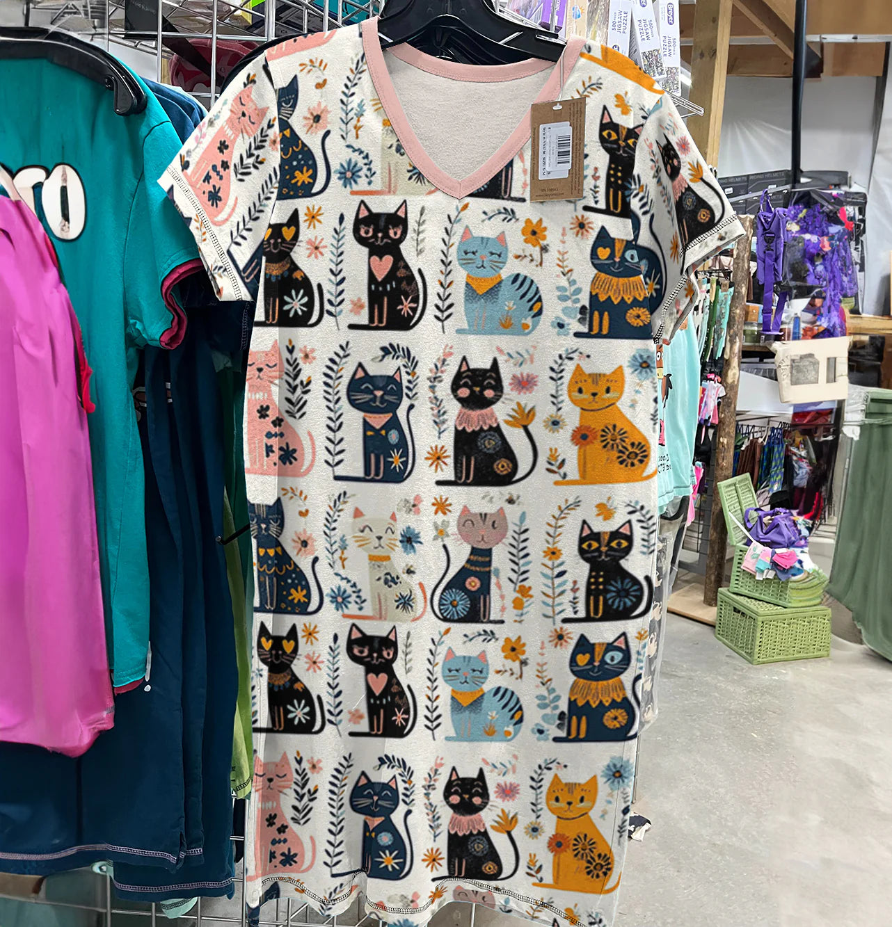 Made from ultra-soft Jersey Knit Fabric (95% polyester, 5% spandex), it's lightweight, breathable, and perfect for lounging. Featuring unique printed graphics, this nightshirt adds a touch of personal style to your cozy moments at home.