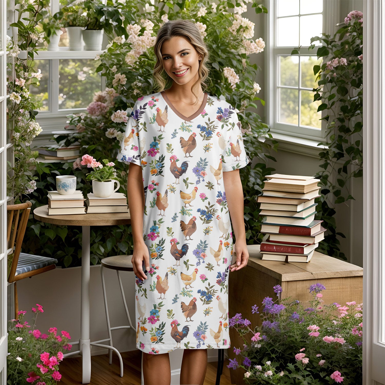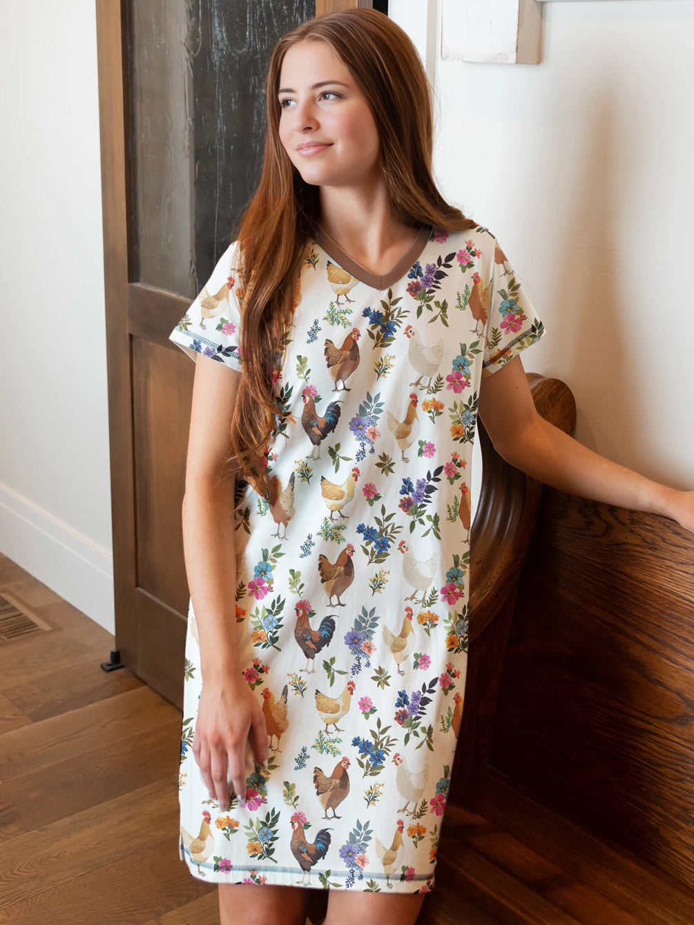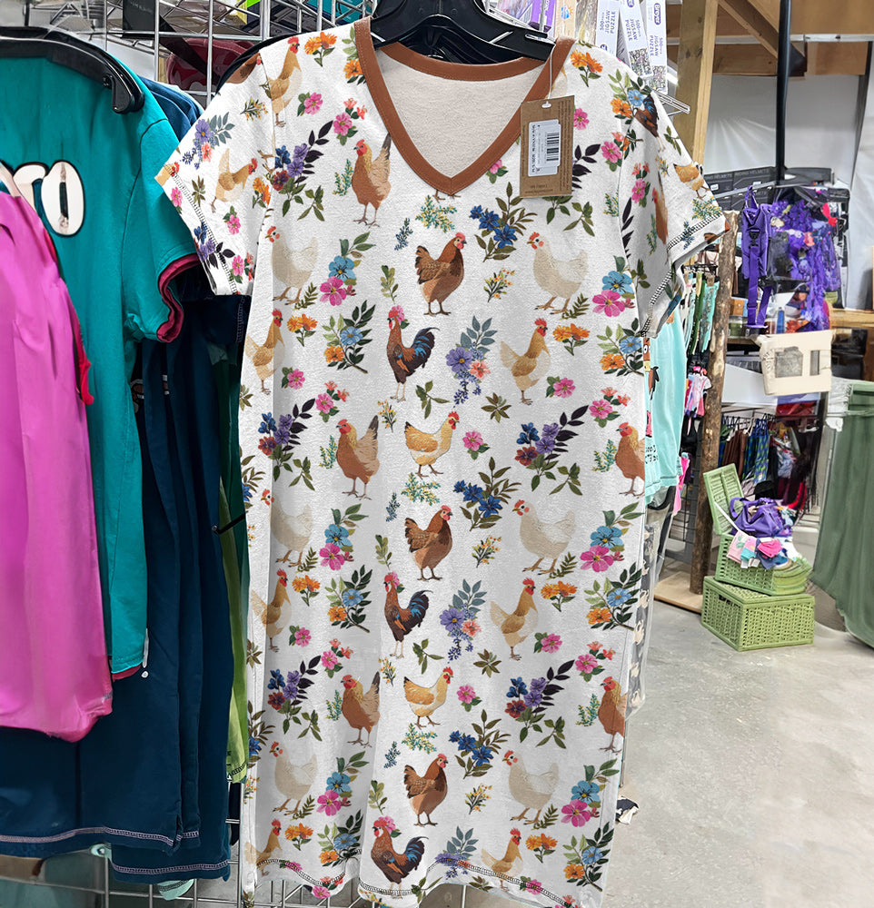 Chicken V-neck Nightshirt Chicken In Bloom