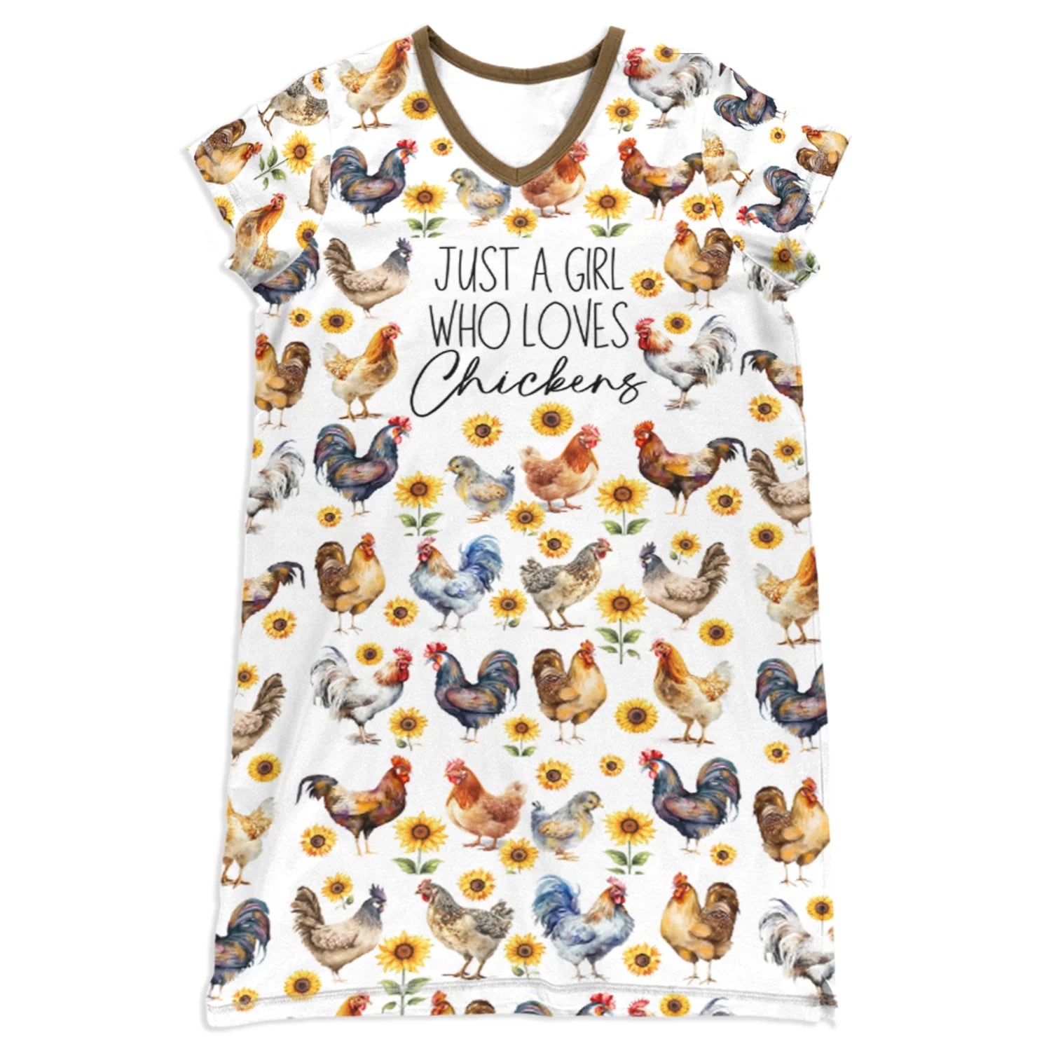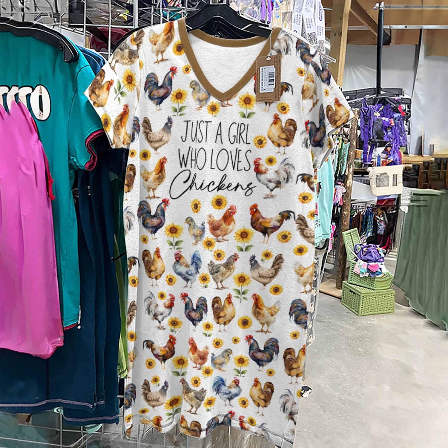 Chicken V-neck Nightshirt Just A Girl Who Loves Chickens