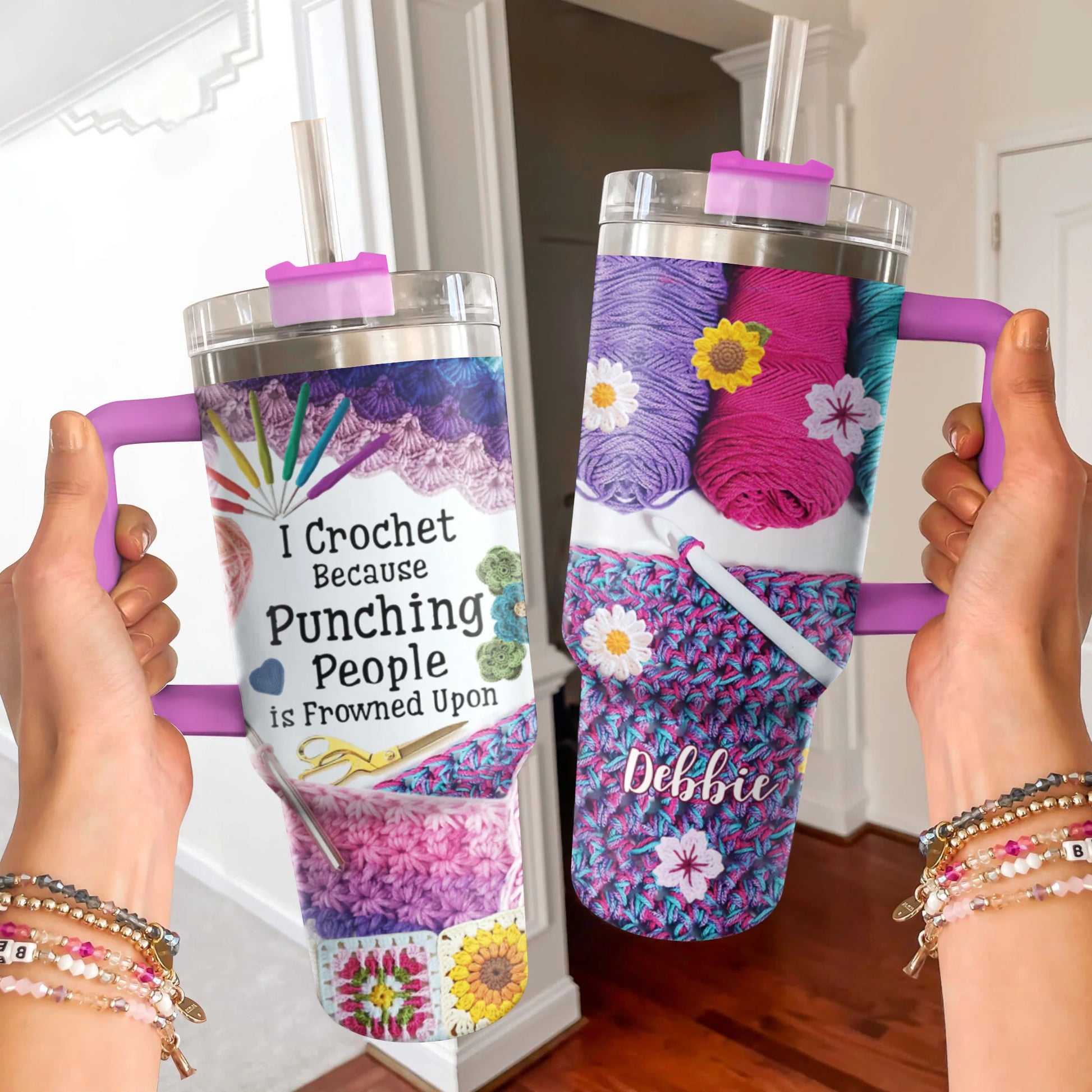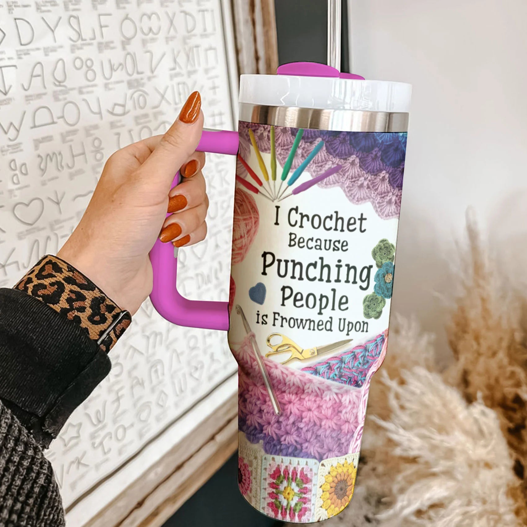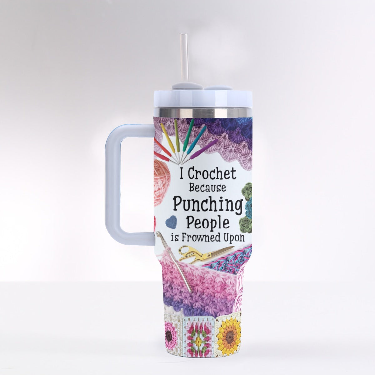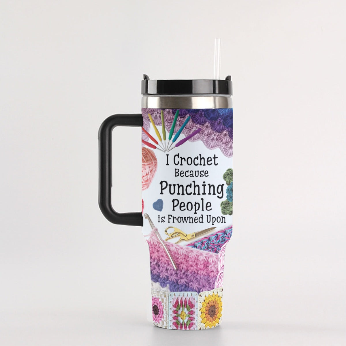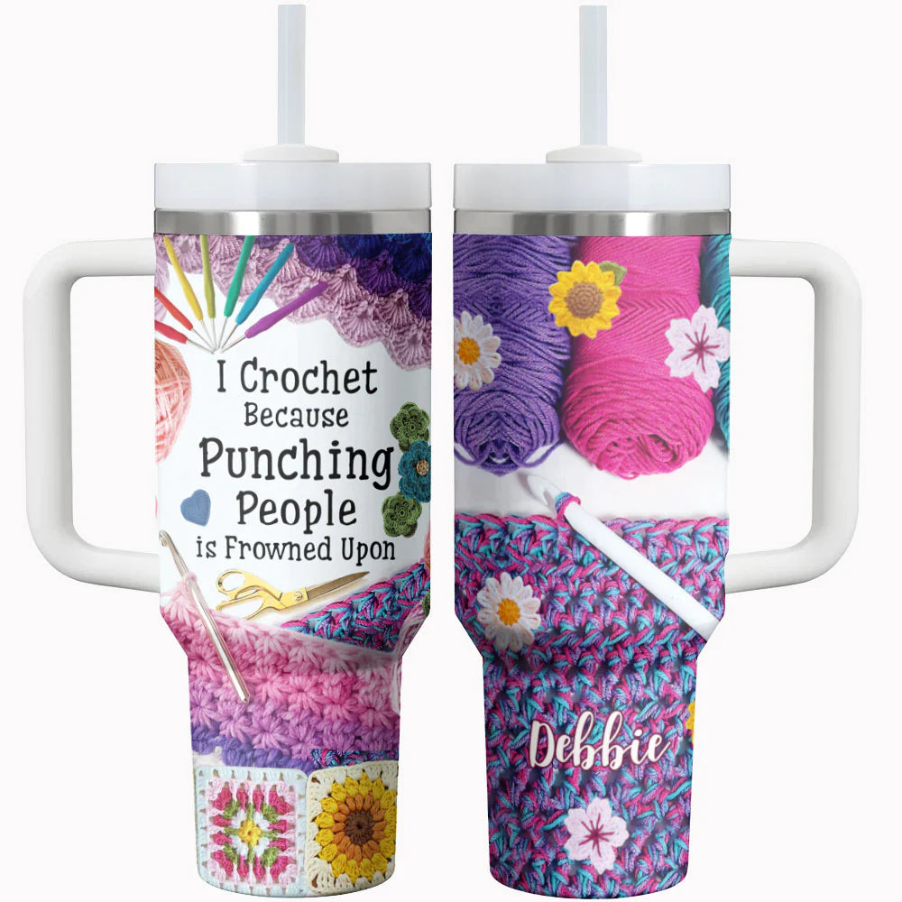 Crochet 40 oz Tumbler I Crochet Because Punching People Is Frown Upon