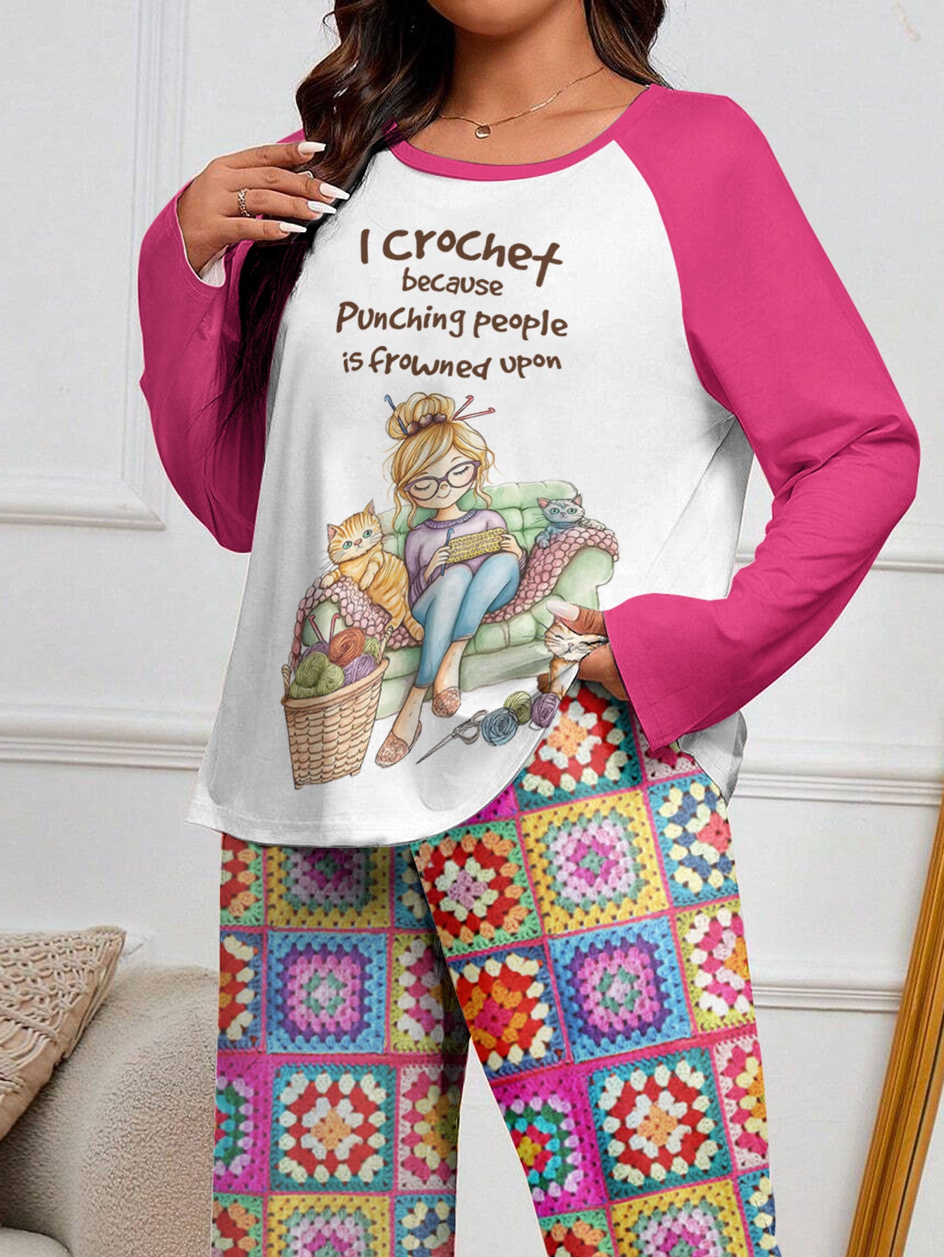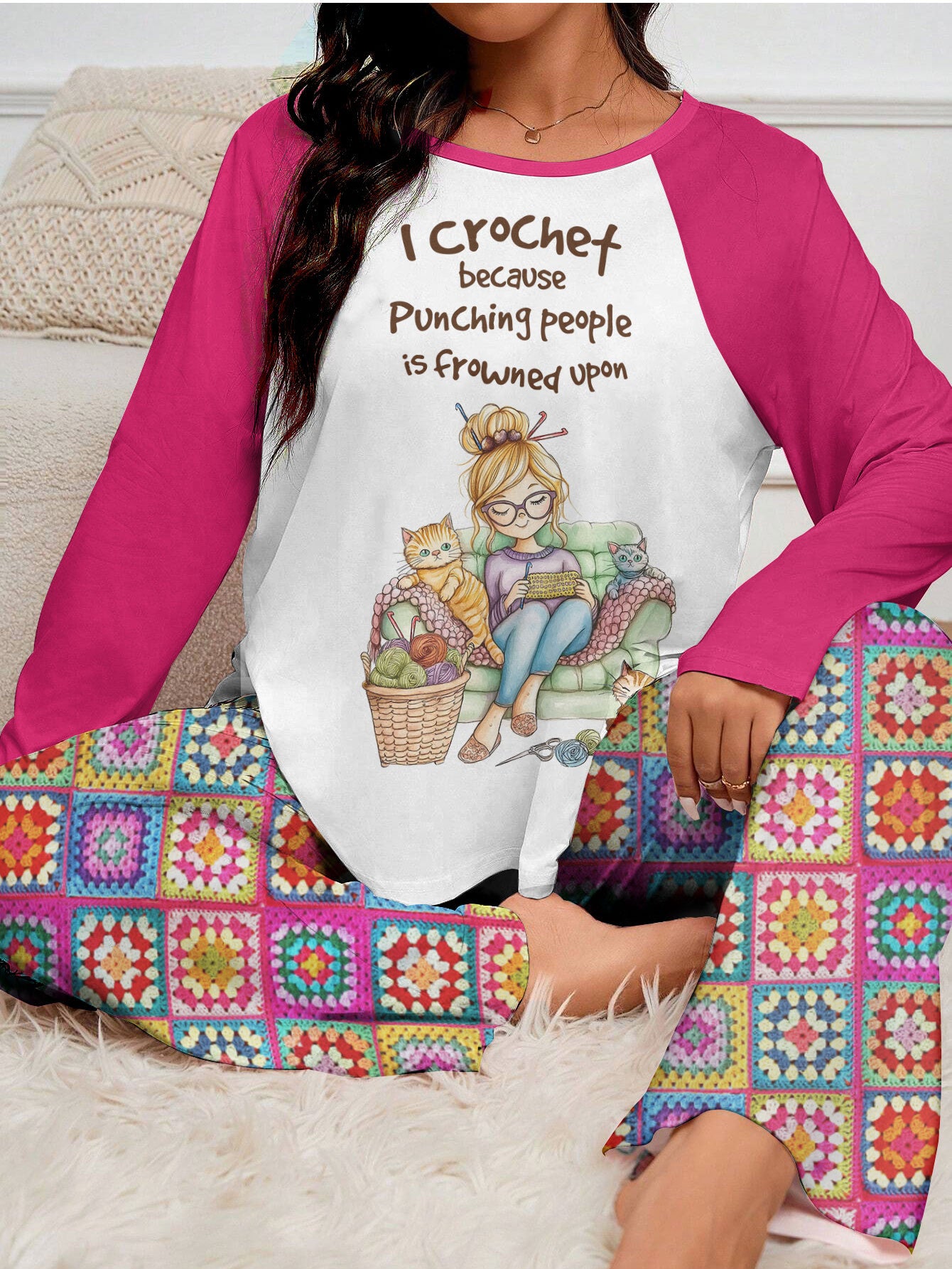 Crochet Lover Raglan Lounge Pajamas I Crochet Because Punching People Is Frowned Upon