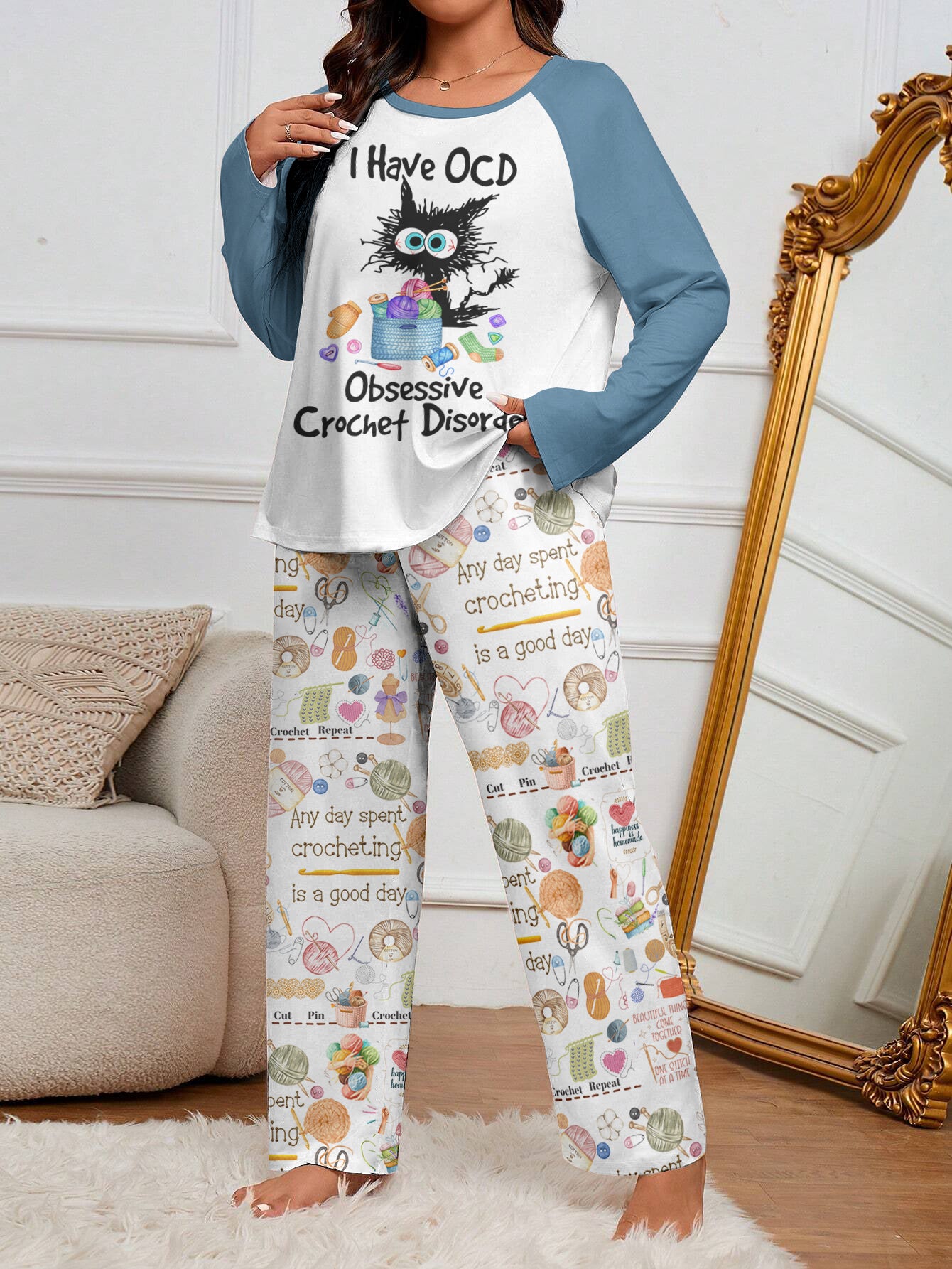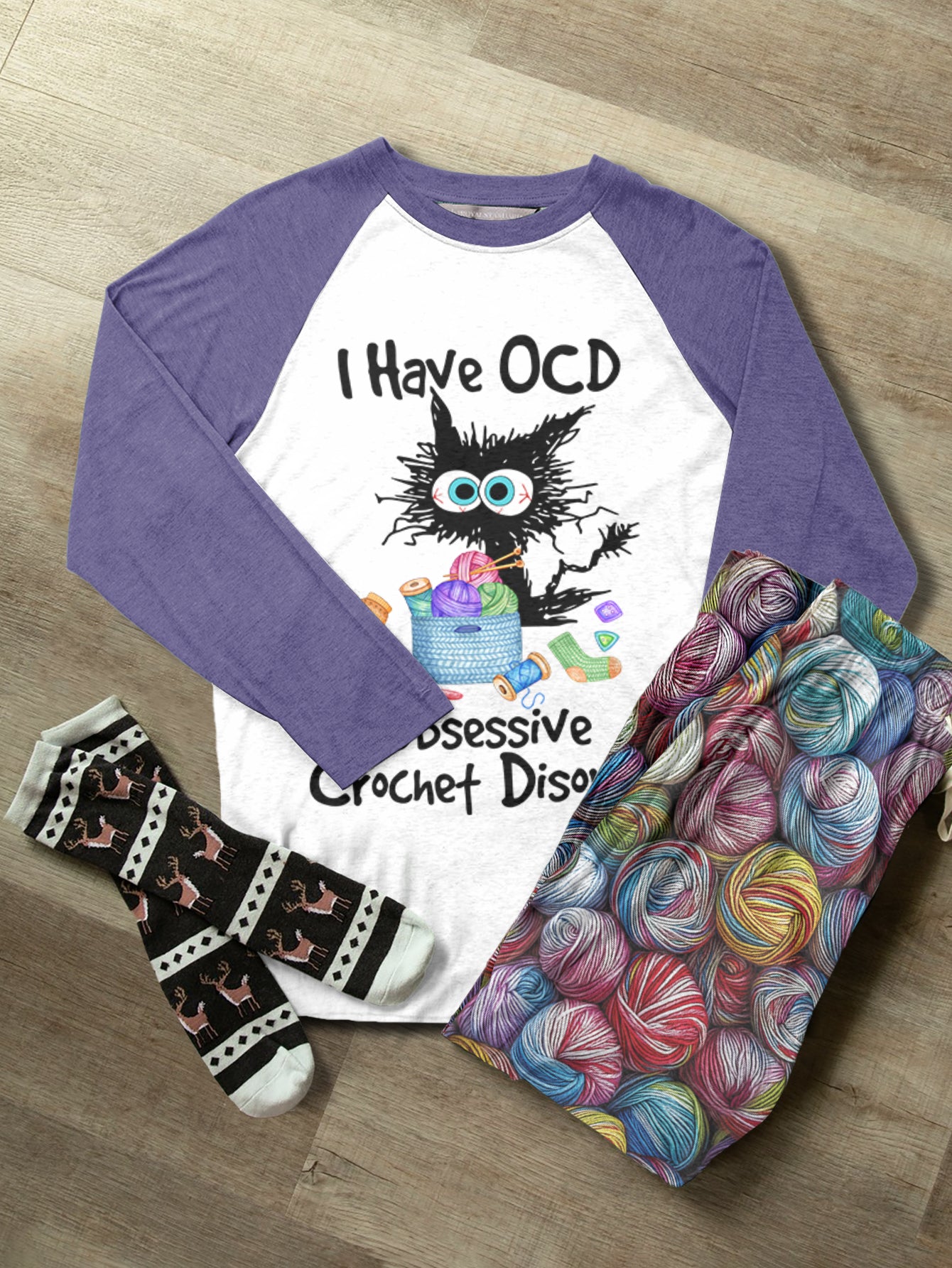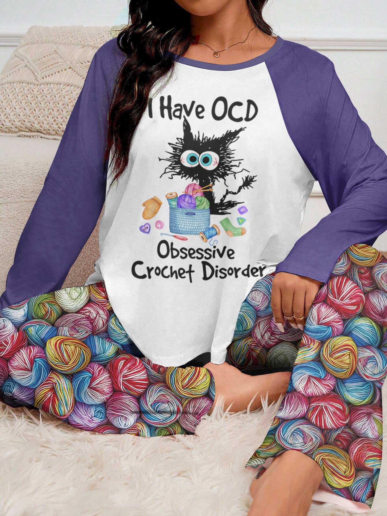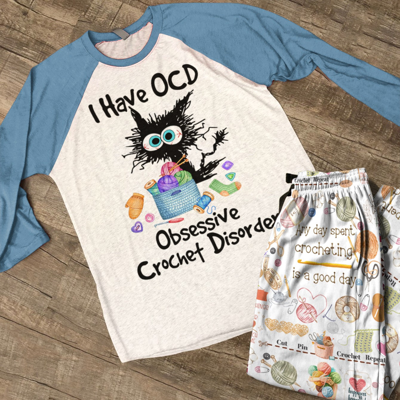 Crochet Lover Raglan Lounge Pajamas I Have OCD Obsessive Crochet Disorder