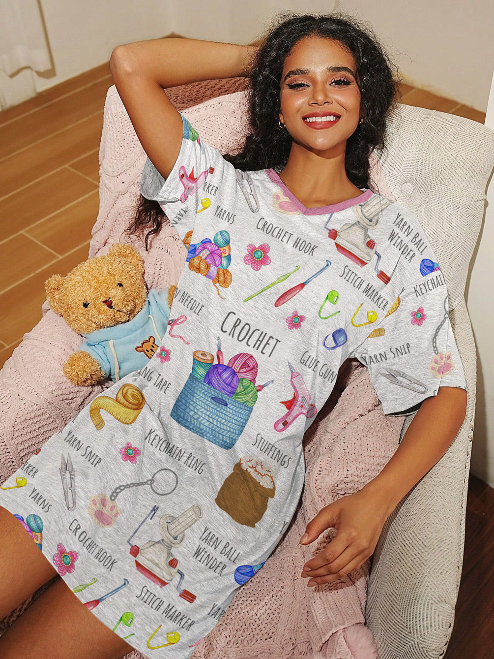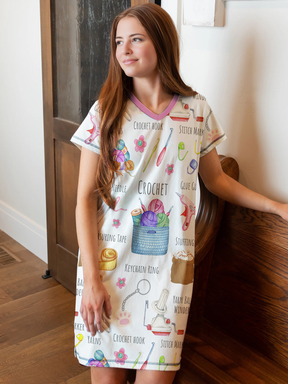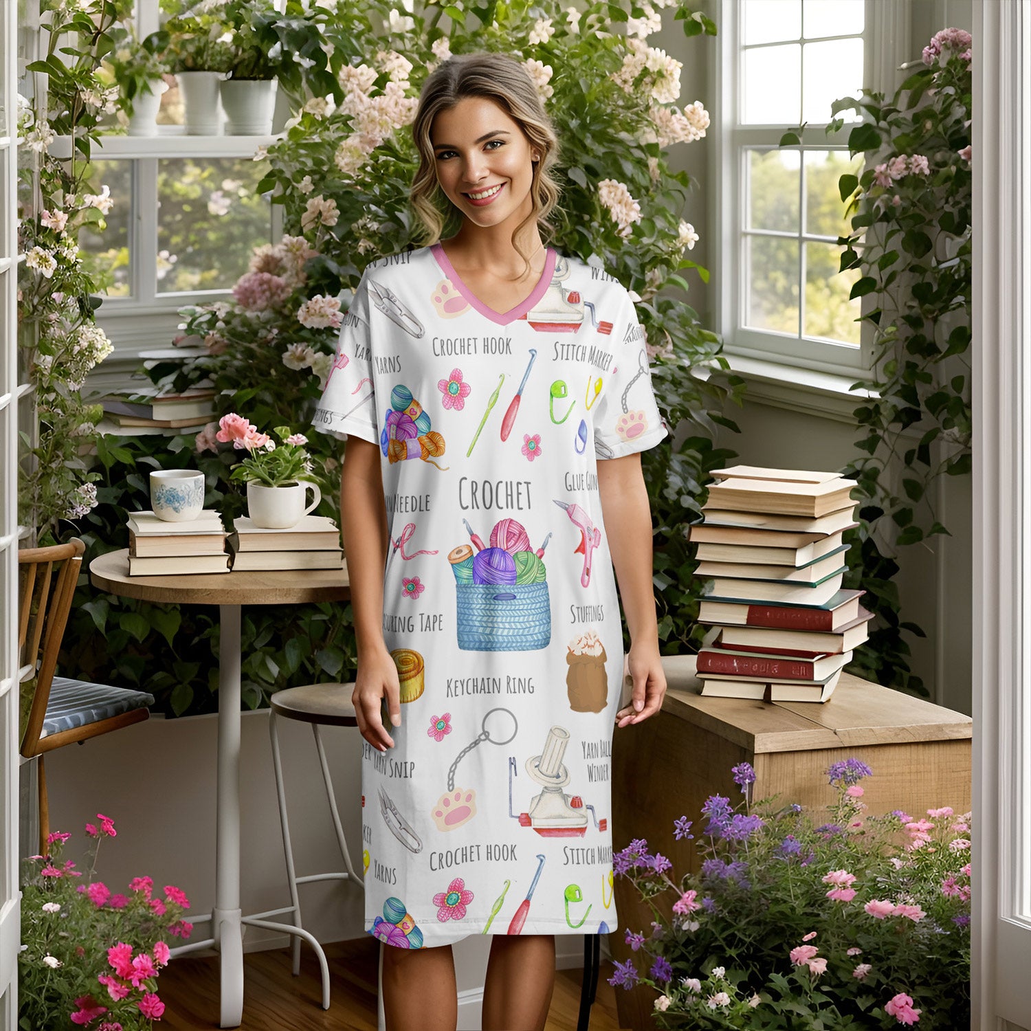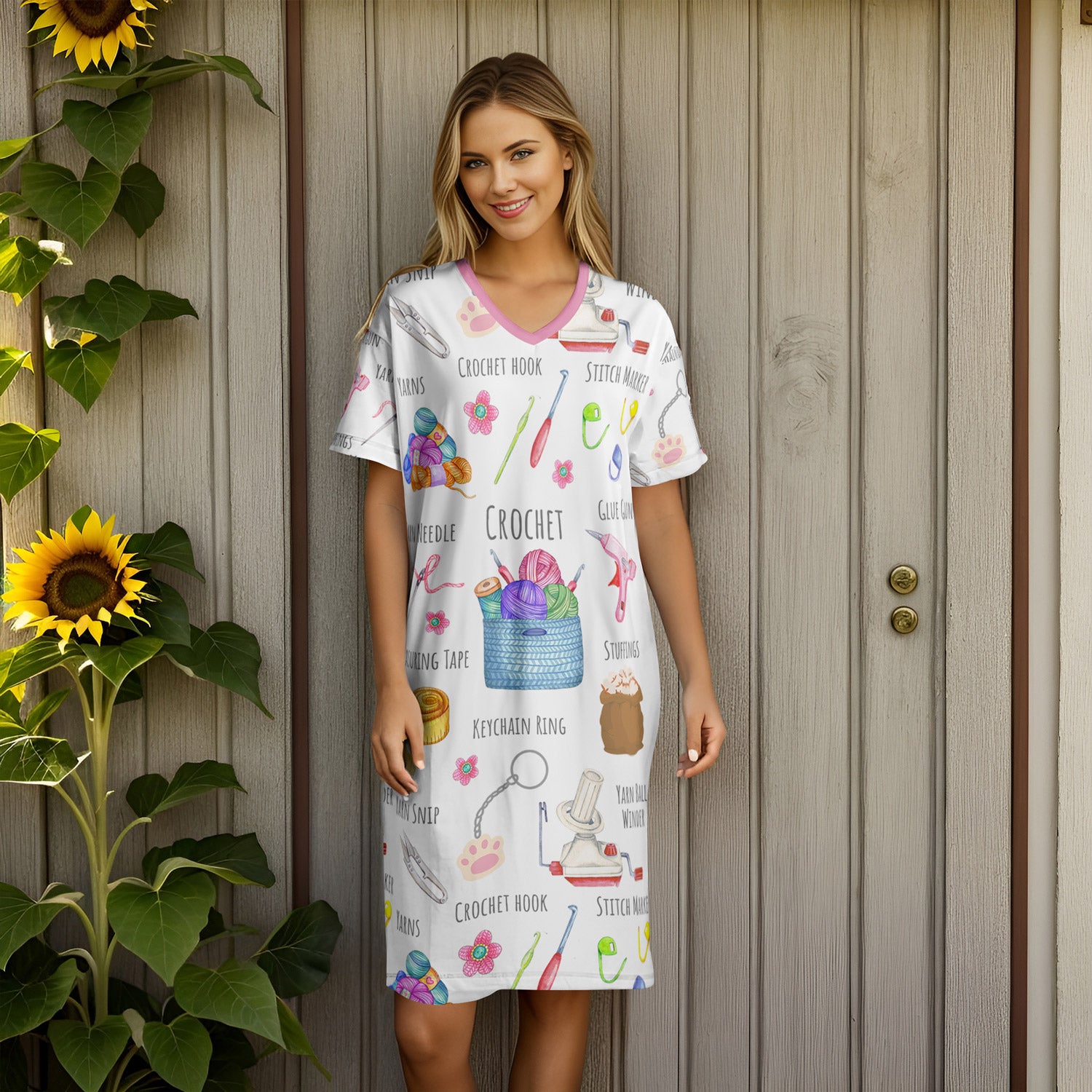 Crochet Lover V-neck Nightshirt Crochet And Chill