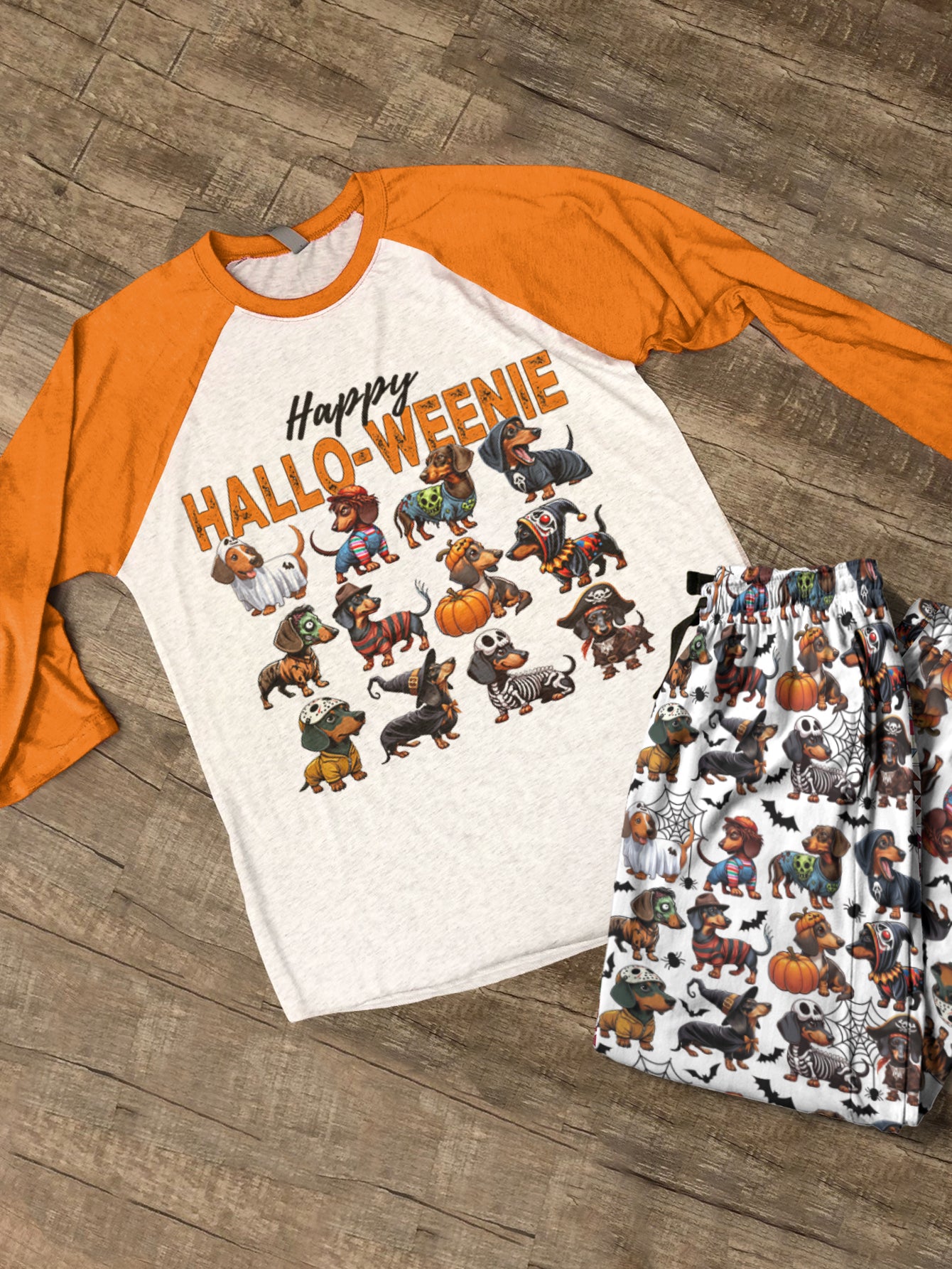Dachshund Lover Raglan Lounge Pajamas Happy Hallo-Weenie Horror Show