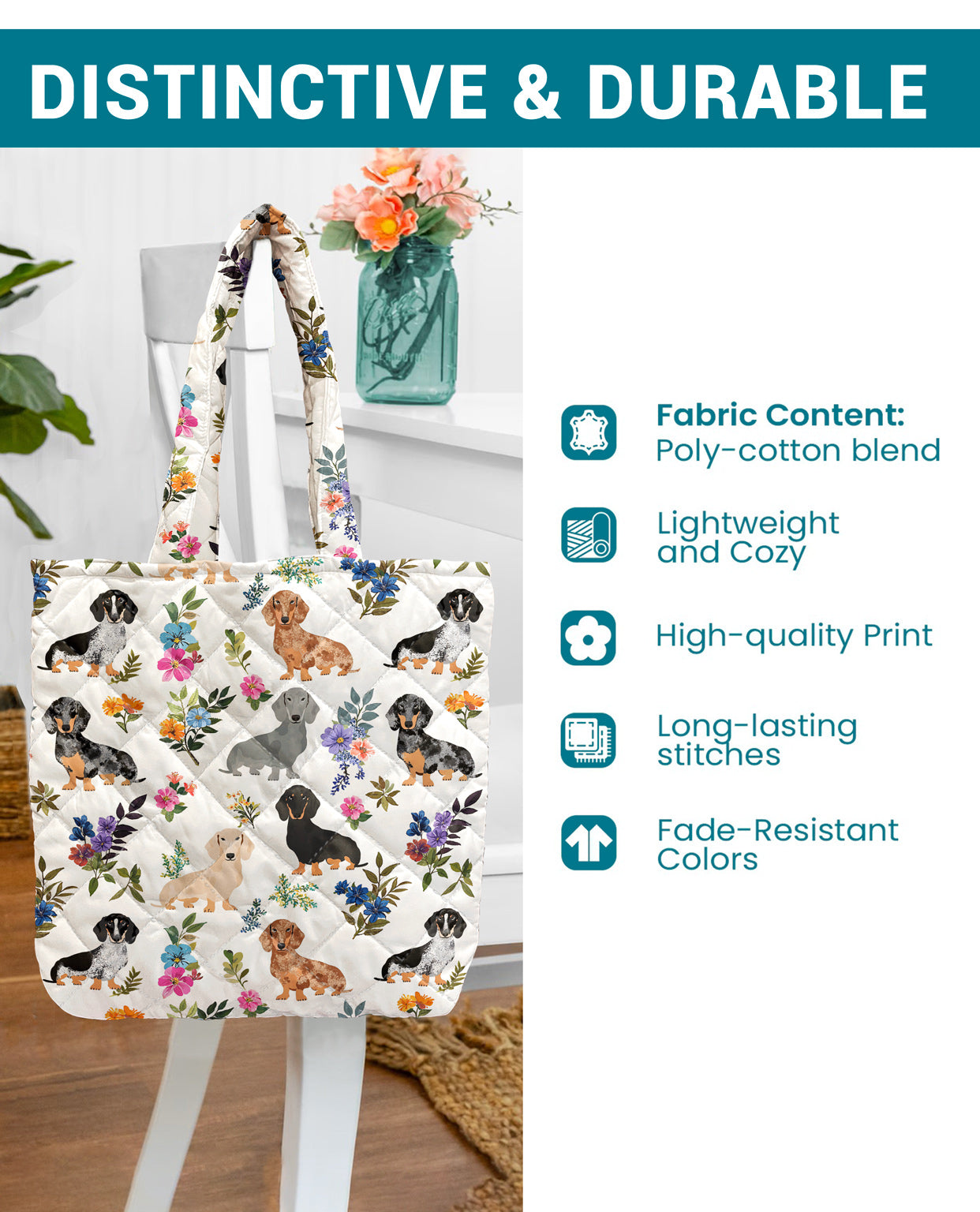 Dachshund Quilted Tote Bag Dachshund In Bloom
