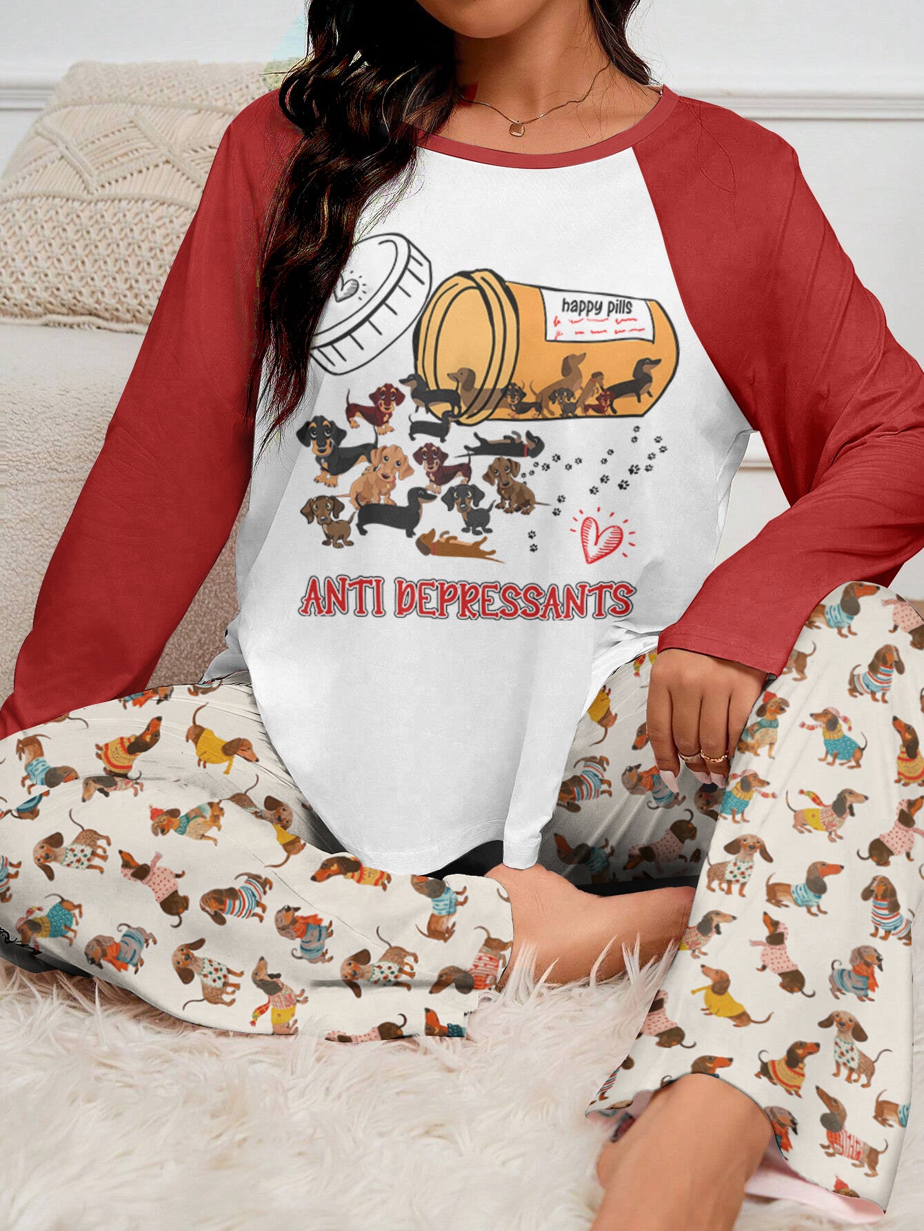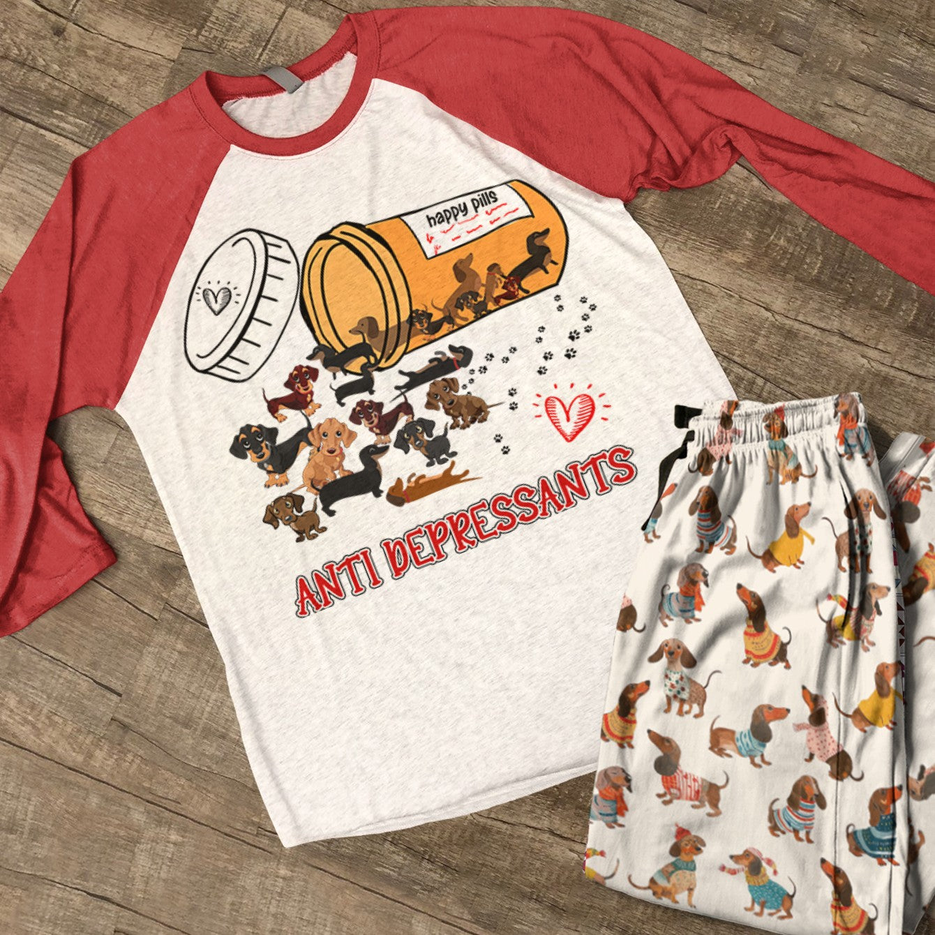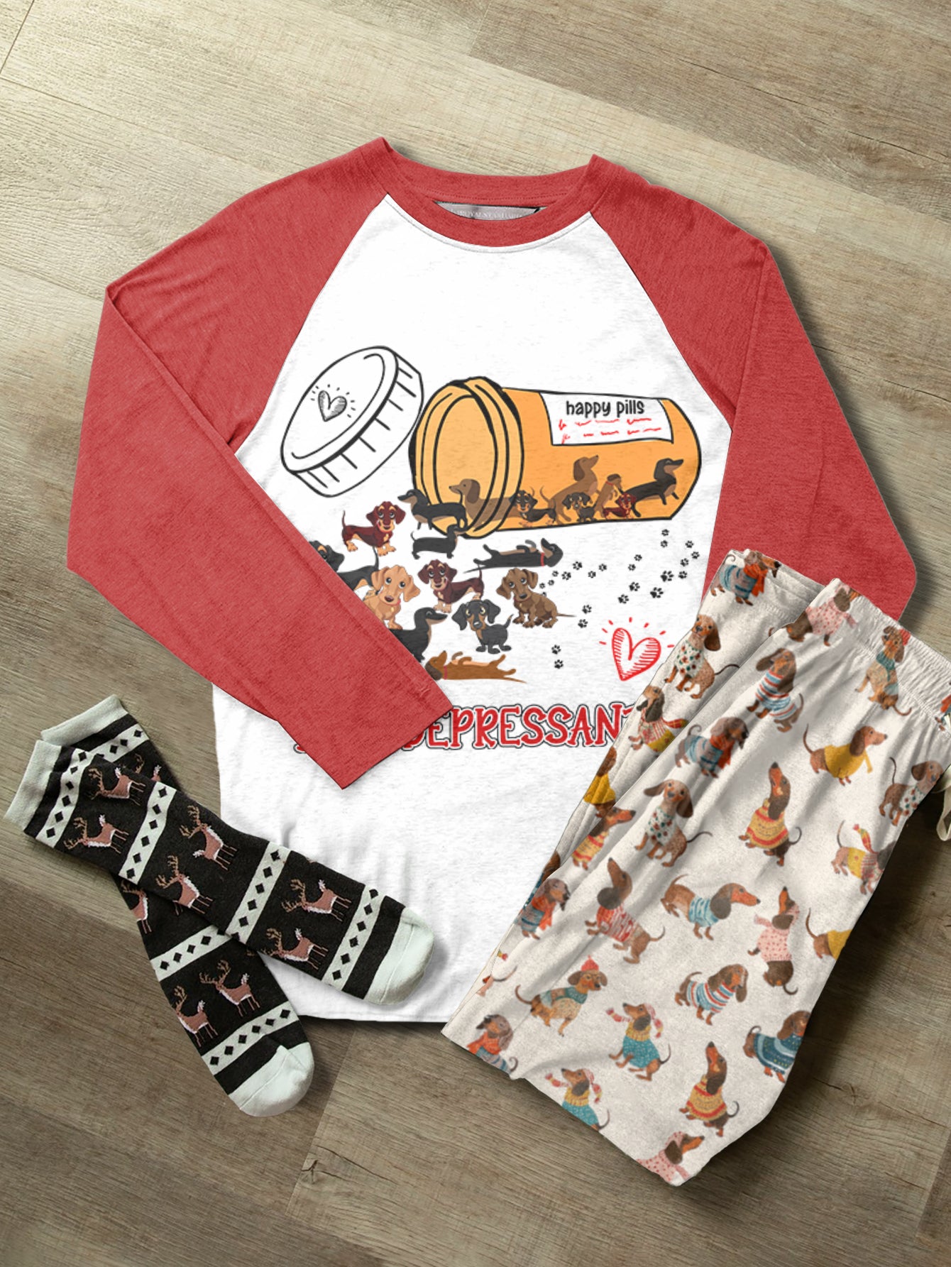 Dachshund Raglan Lounge Pajamas Anti Depressants
