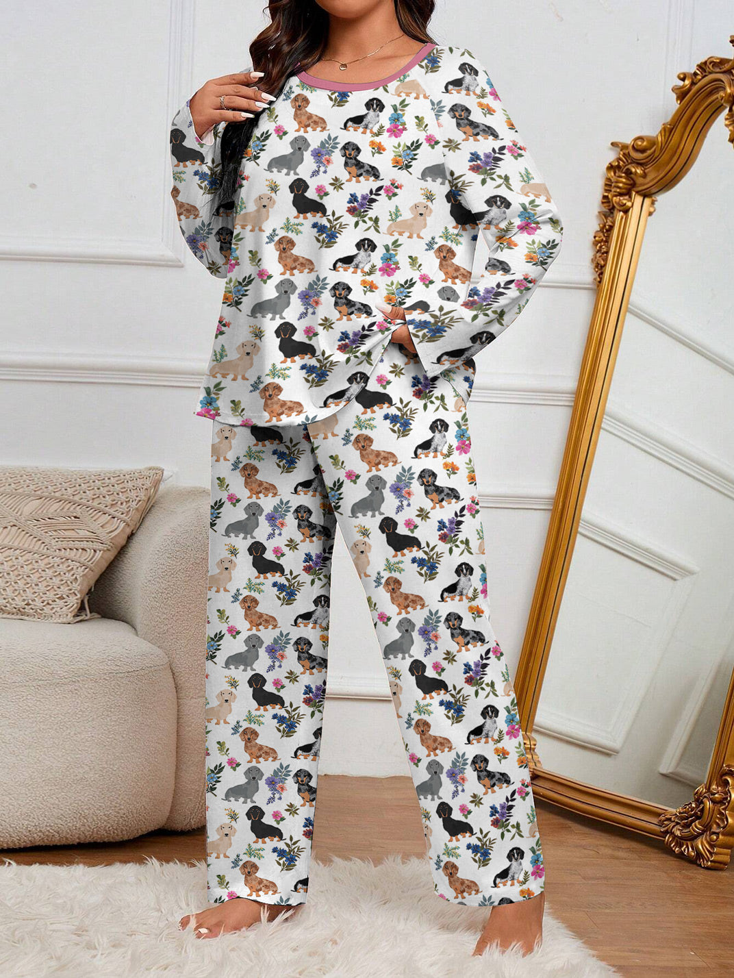 Dachshund Raglan Lounge Pajamas Dachshund In Bloom