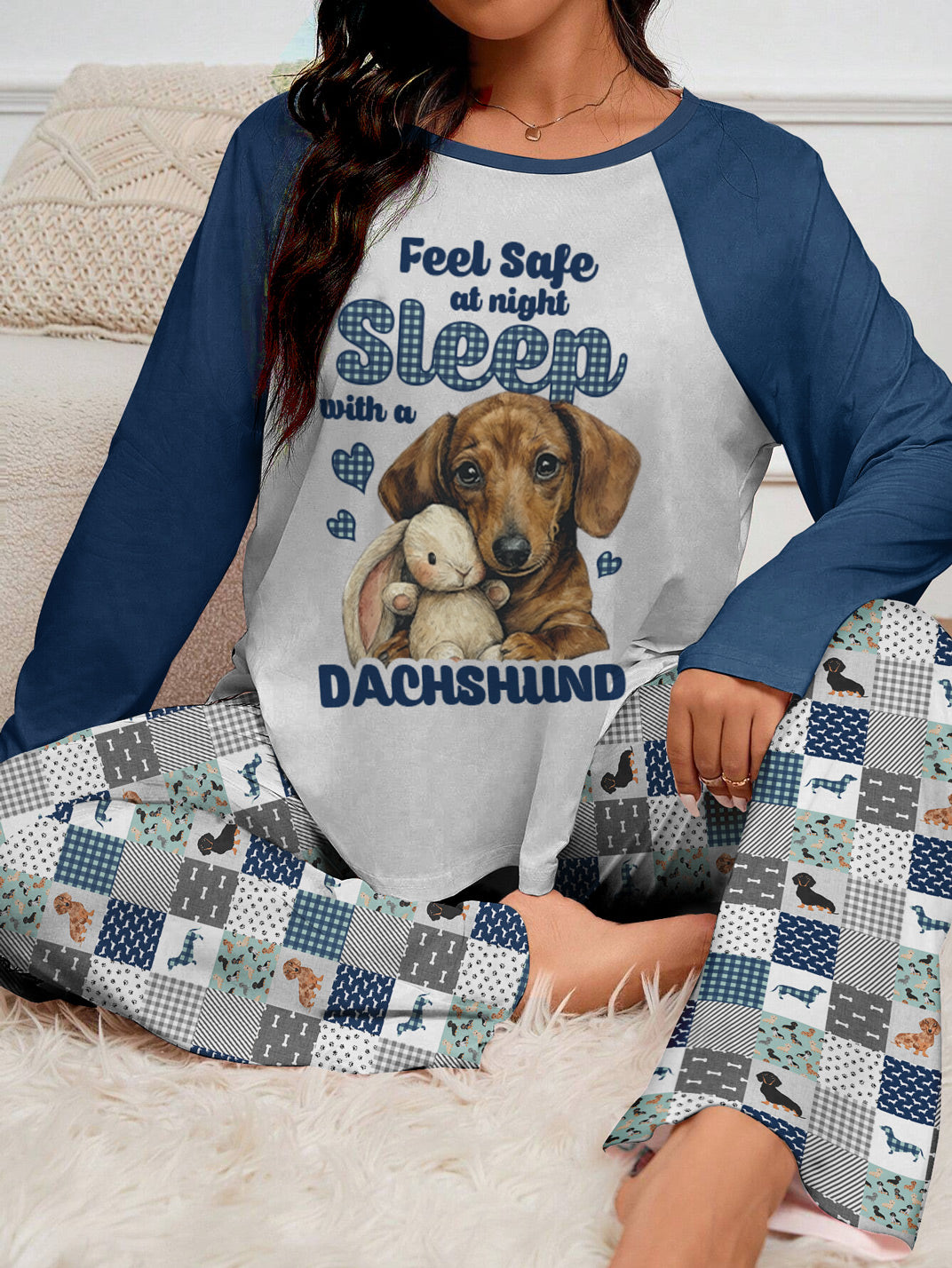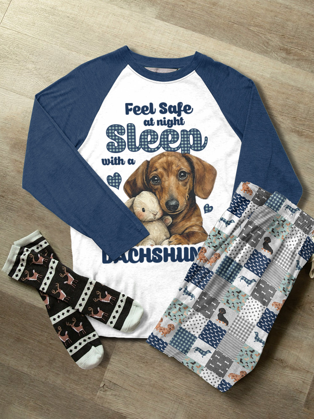 Dachshund Raglan Lounge Pajamas Sleep With A Dachshund