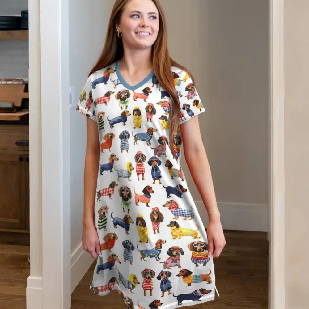 Dachshund V-neck Nightshirt Amazing Stylish Dachshunds