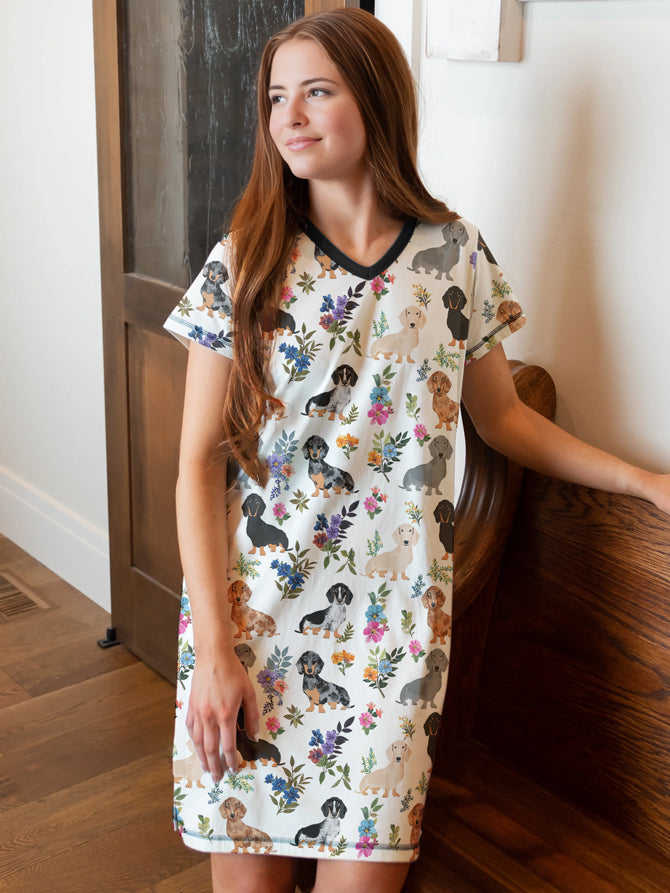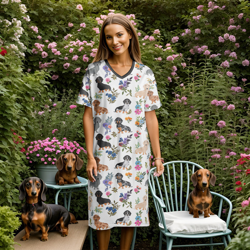 Dachshund V-neck Nightshirt Dachshund In Bloom