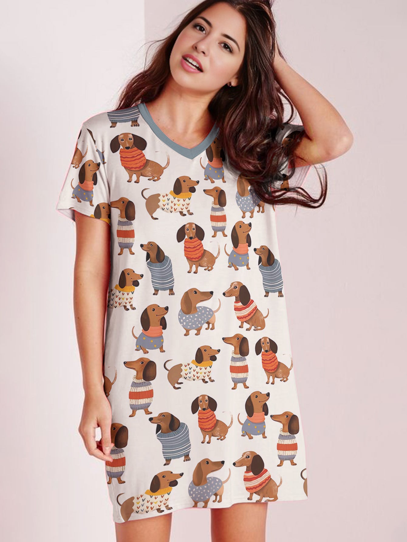 Dachshund V-neck Nightshirt Dapper Dachshunds