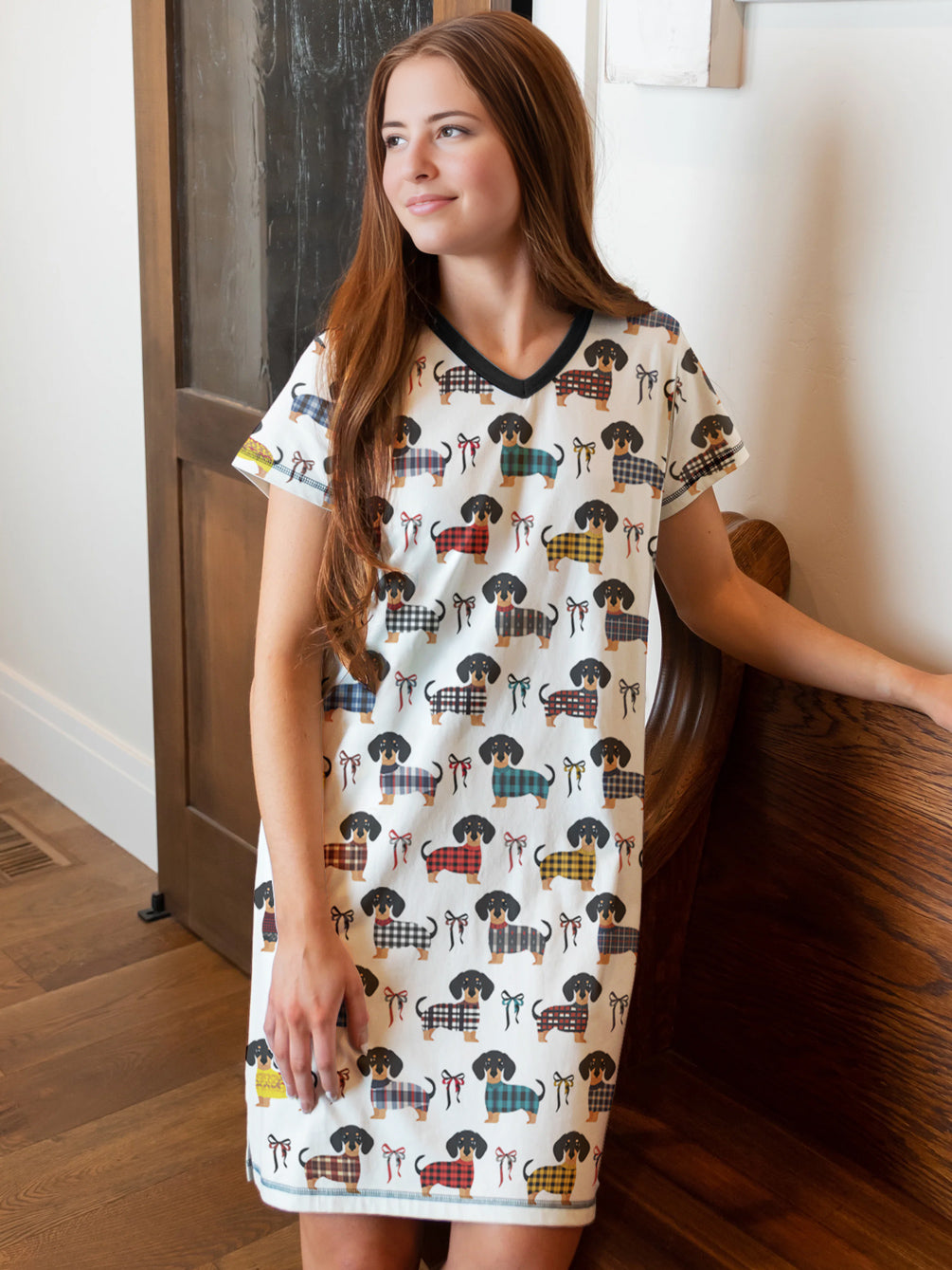 Made from ultra-soft Jersey Knit Fabric (95% polyester, 5% spandex), it's lightweight, breathable, and perfect for lounging. Featuring unique printed graphics, this nightshirt adds a touch of personal style to your cozy moments at home.